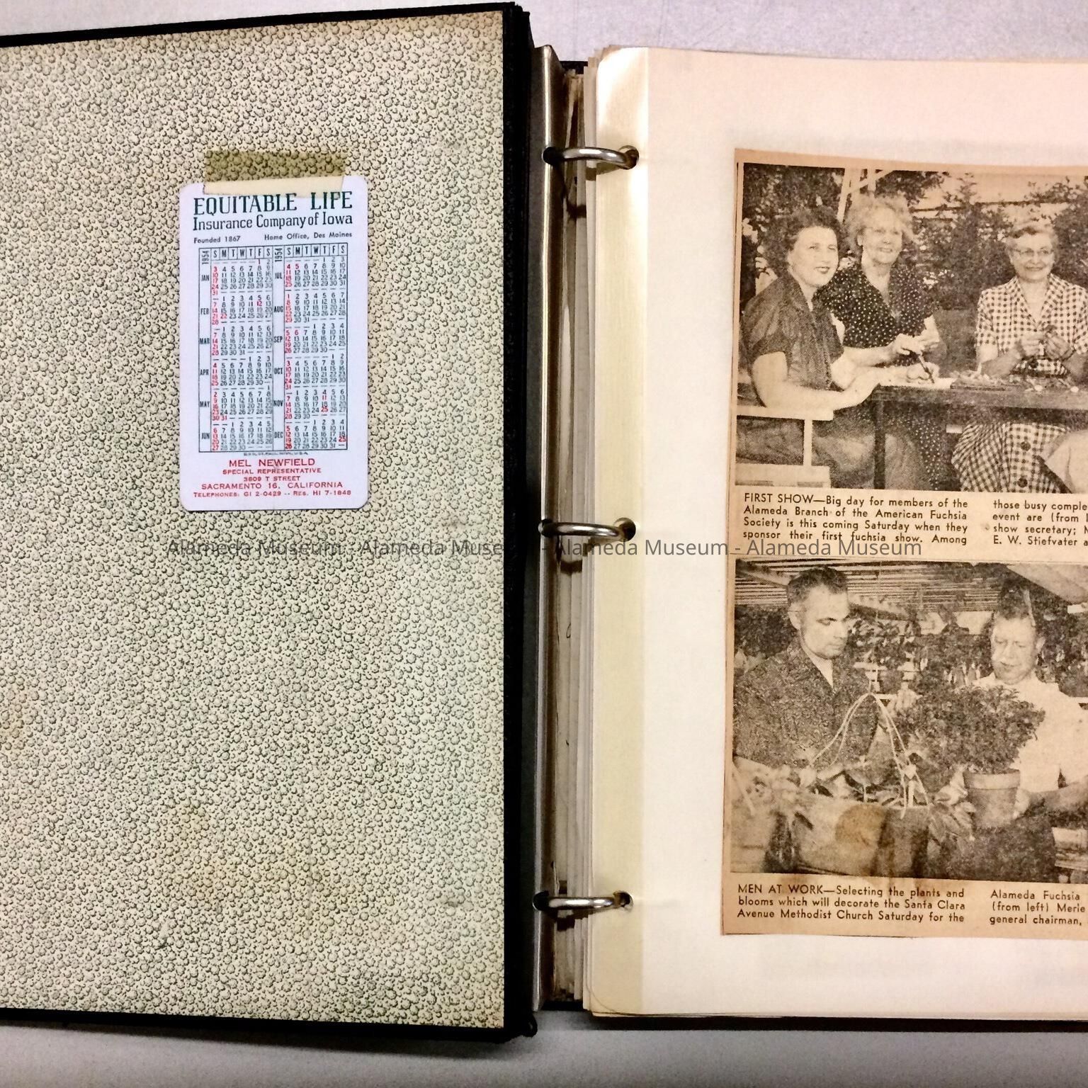 Binder containing newspaper clippings, press releases, etc., relevant to the Alameda Branch of the American Fuchsia Society.