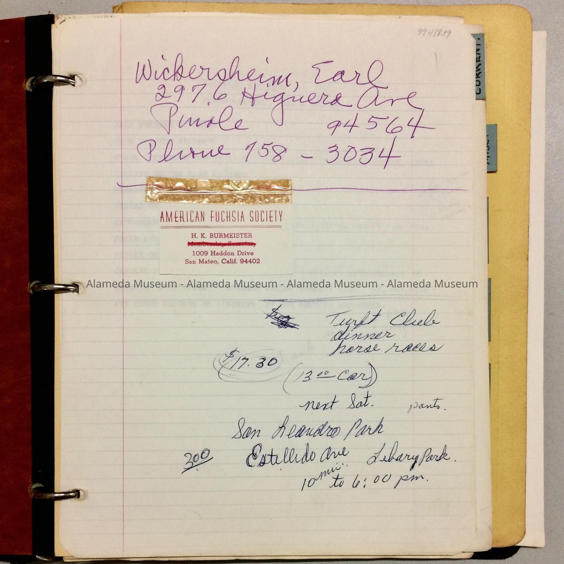 Binder of the Alameda Branch of the American Fuchsia Society, 1950s-1971Entry/Object ID