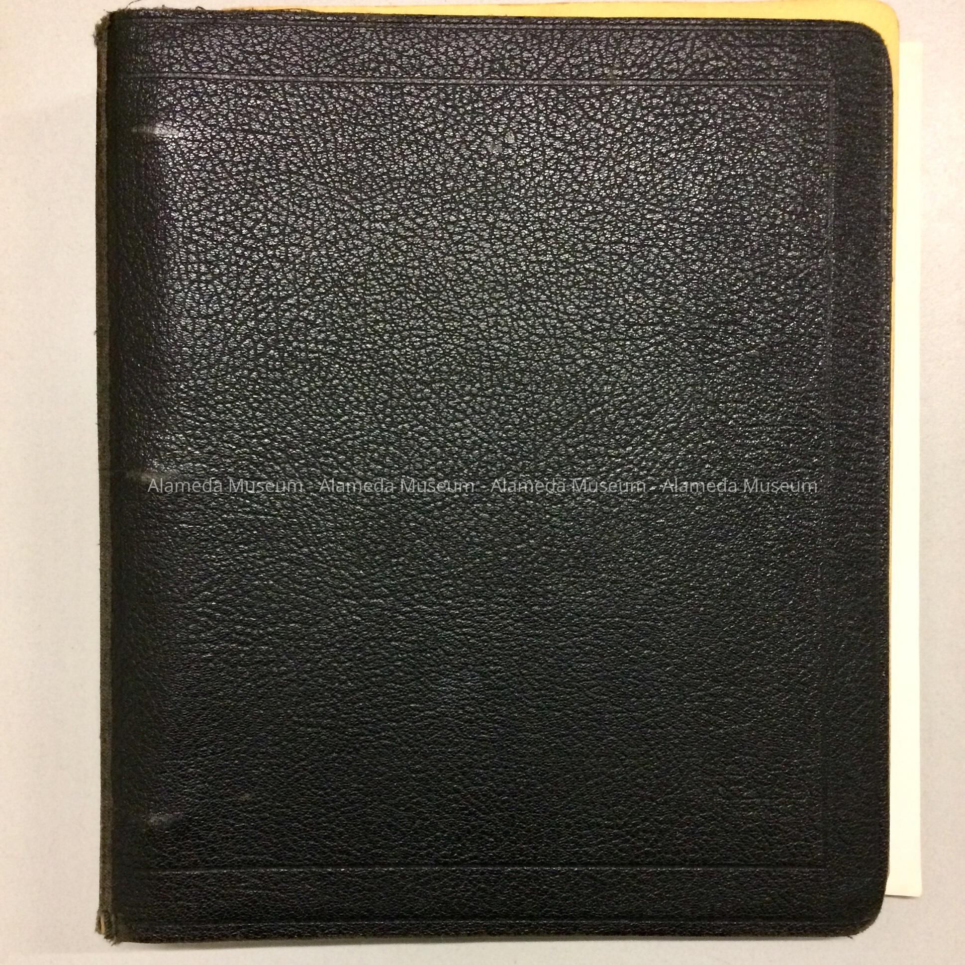 Description: Loose leaf binder with cover of imitation black colored leather.