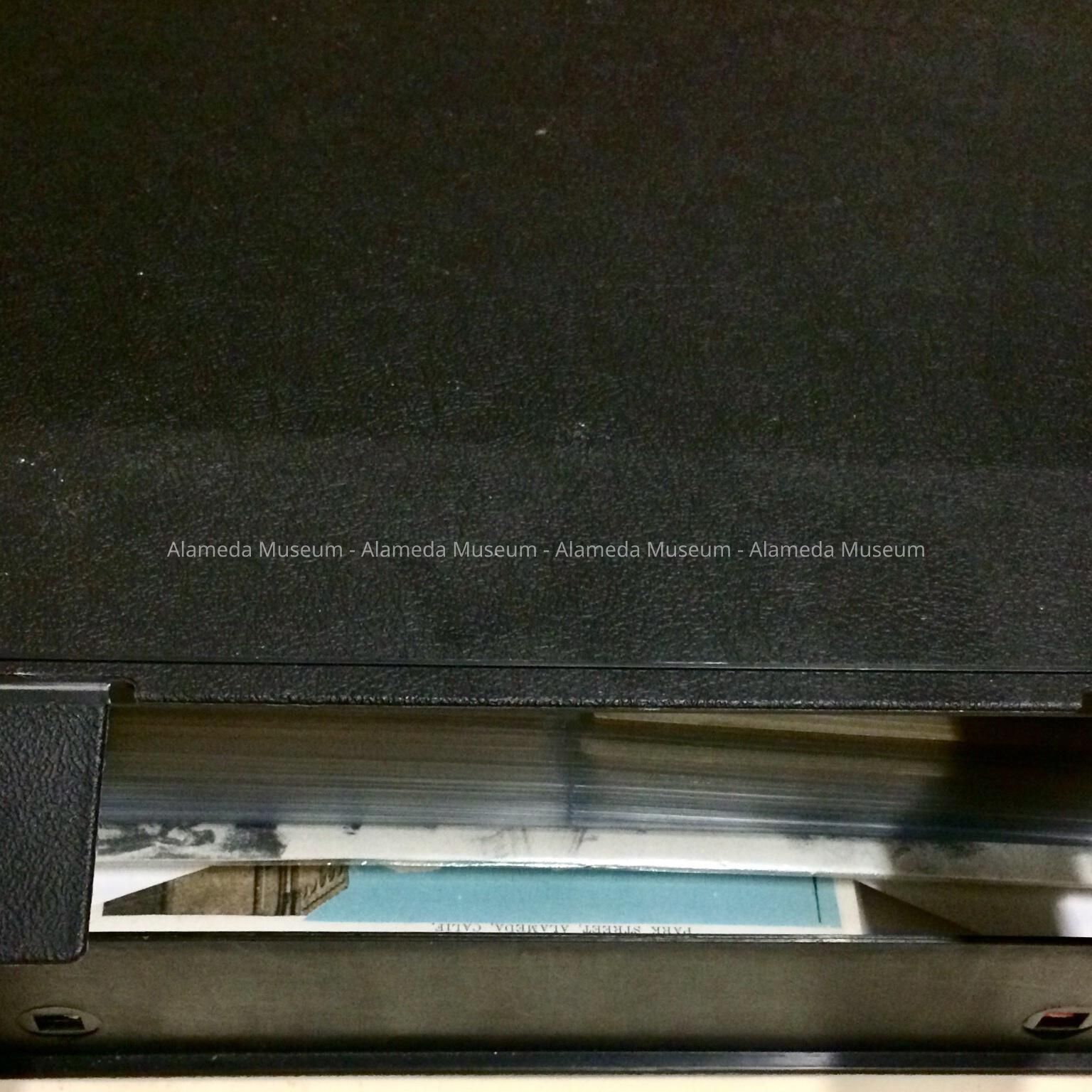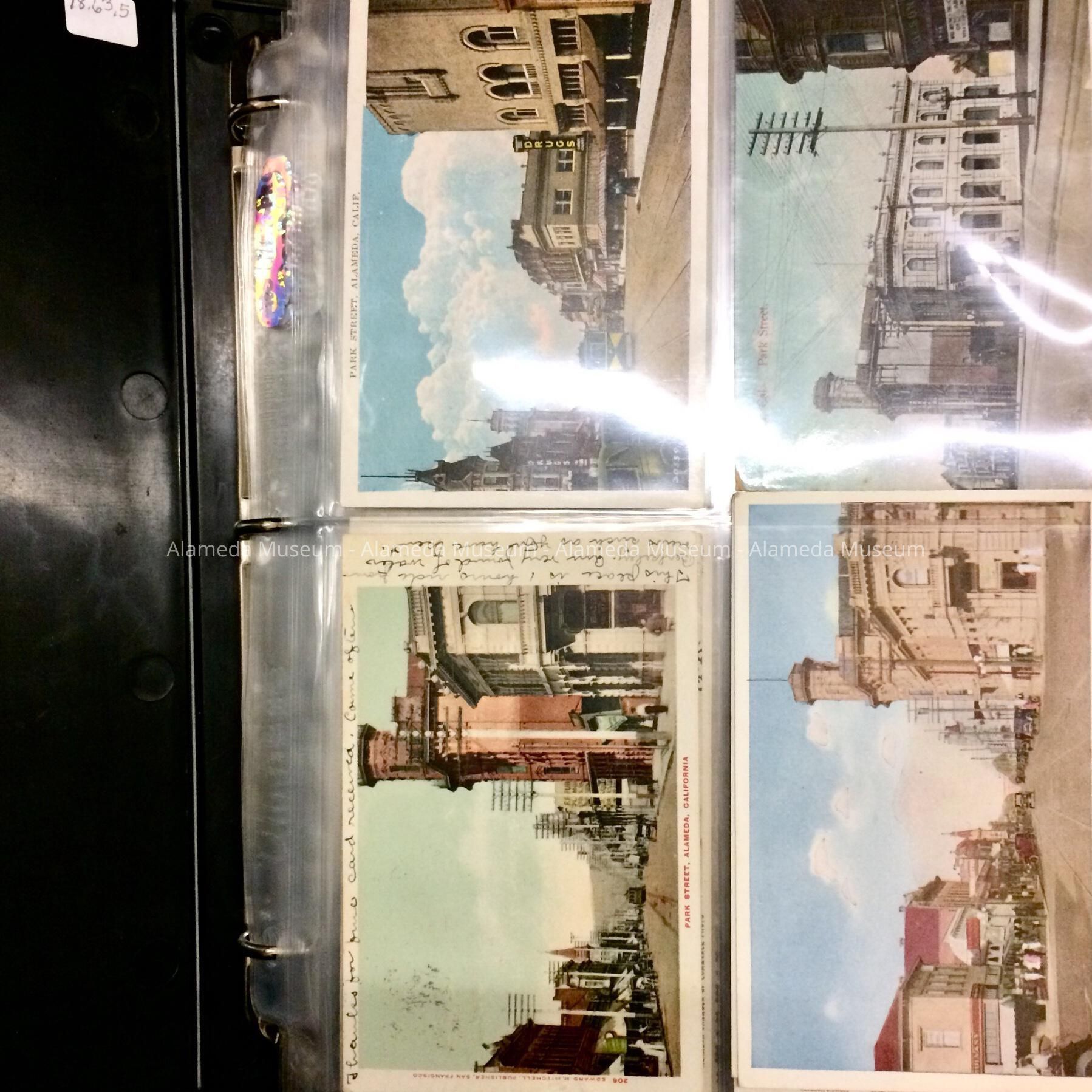 History of Object: A collection compiled over the years by the donor that includes Alameda postcards, 19th Century advertising cards, booklets, photos, etc.