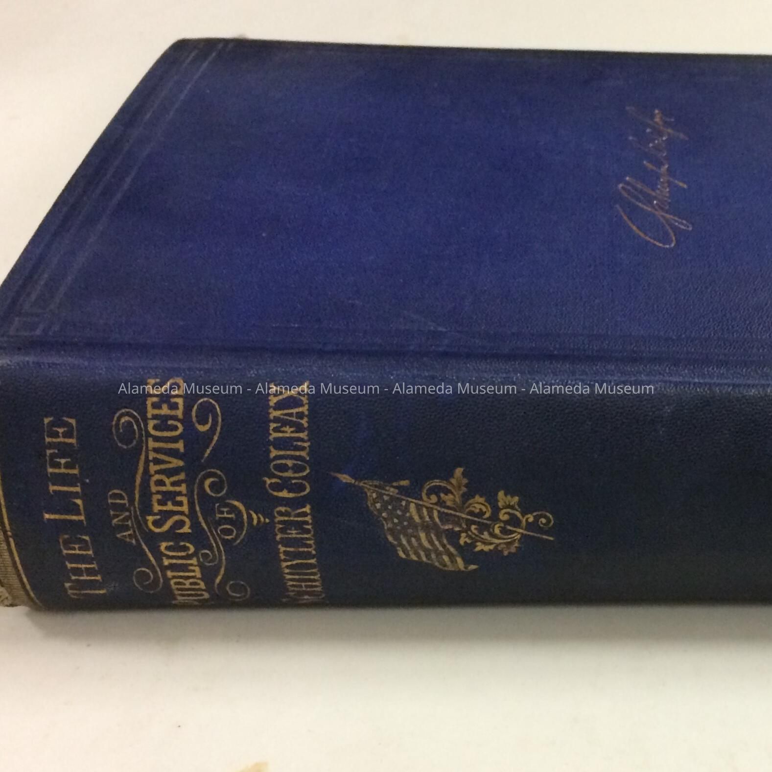 History of Object: This is a biography of Schuyler Colfax, written by Edward W. Martin, and published in San Francisco, in 1868. Mr. Colfax served as vice president under U. Grant. On page 222 there is a reference to an excursion made to Alameda and reference to its railroad and president, Mr. Cohen, Mr. Colfax was related to the Clark family through marriage.
