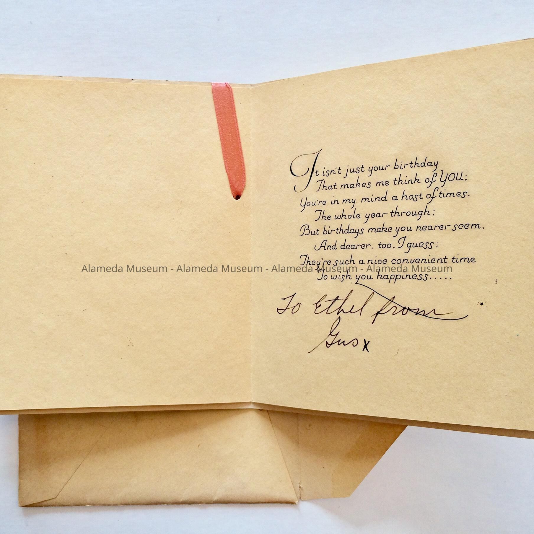 Birthday Card and envelope presented to Ethel Ekberg, c. 1930sEntry/Object ID