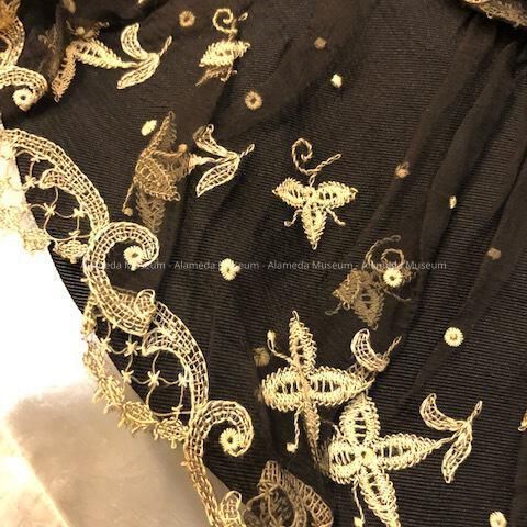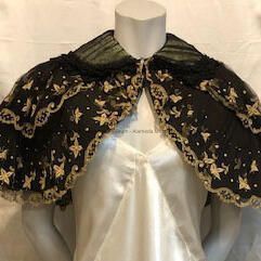 Black chiffon cape with ecru embroidery and green lining, 1900Entry/Object ID