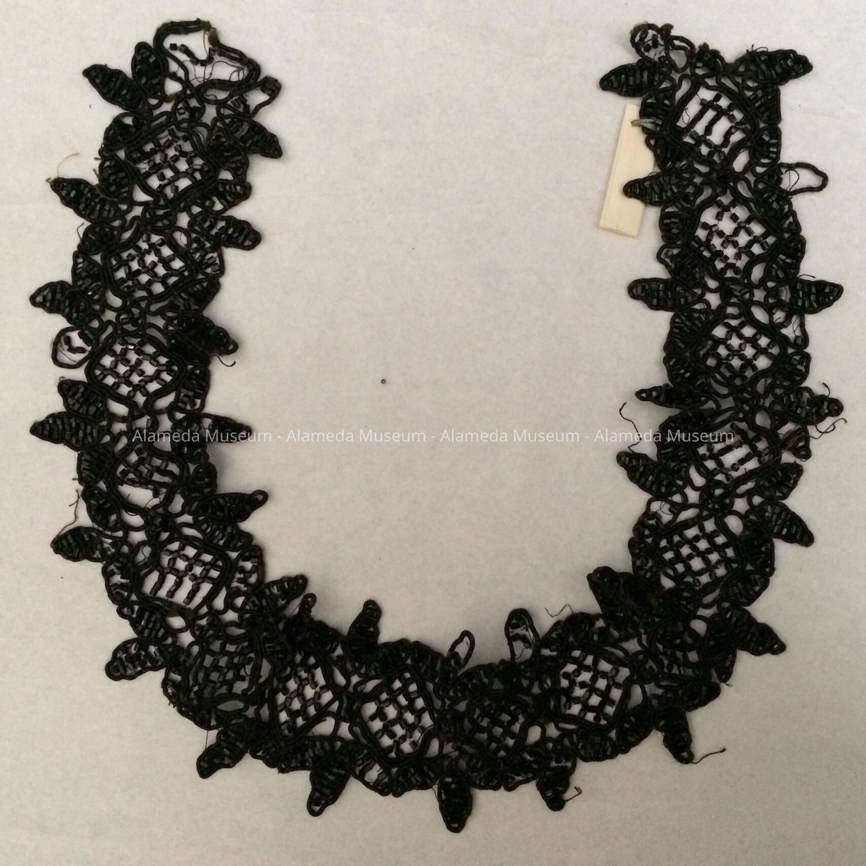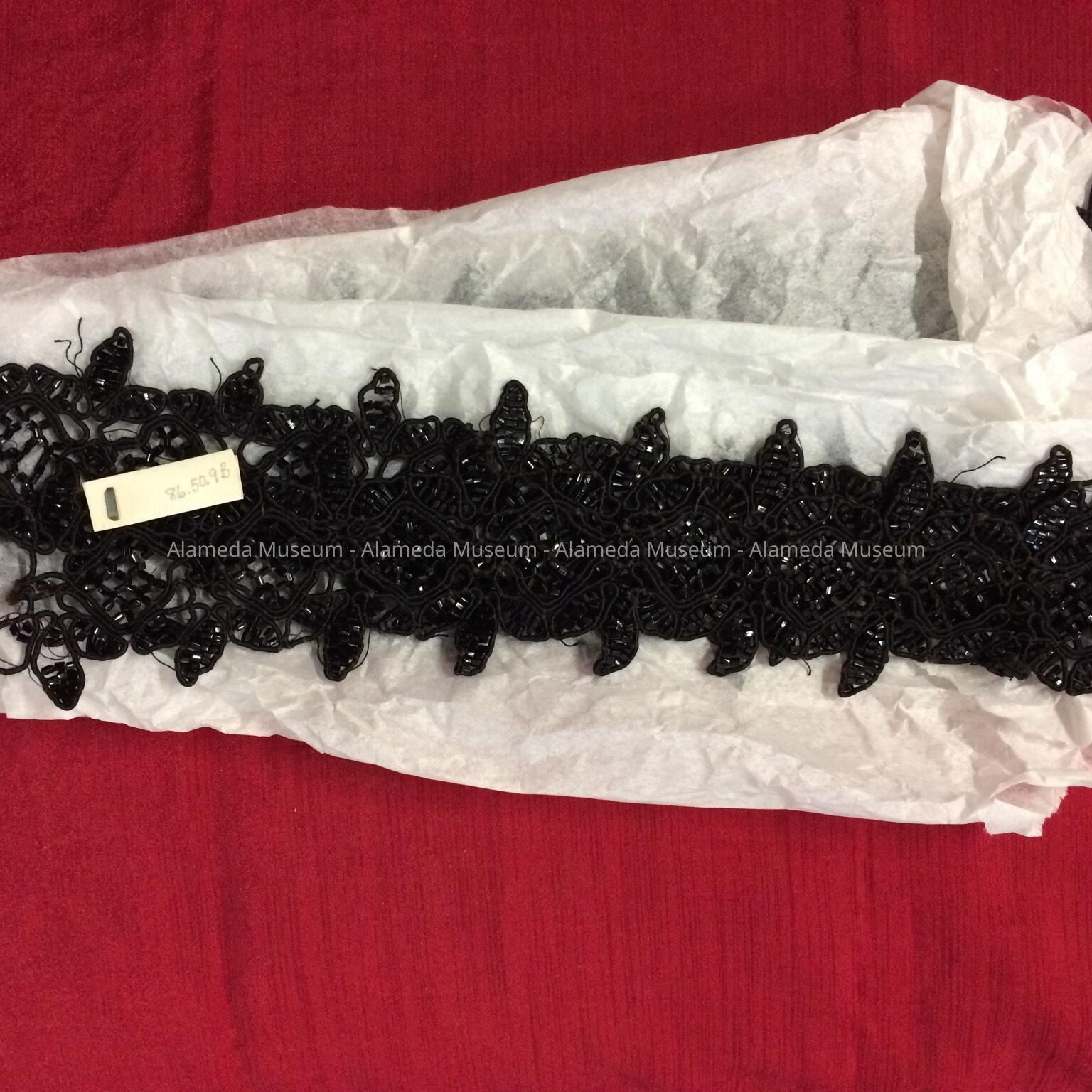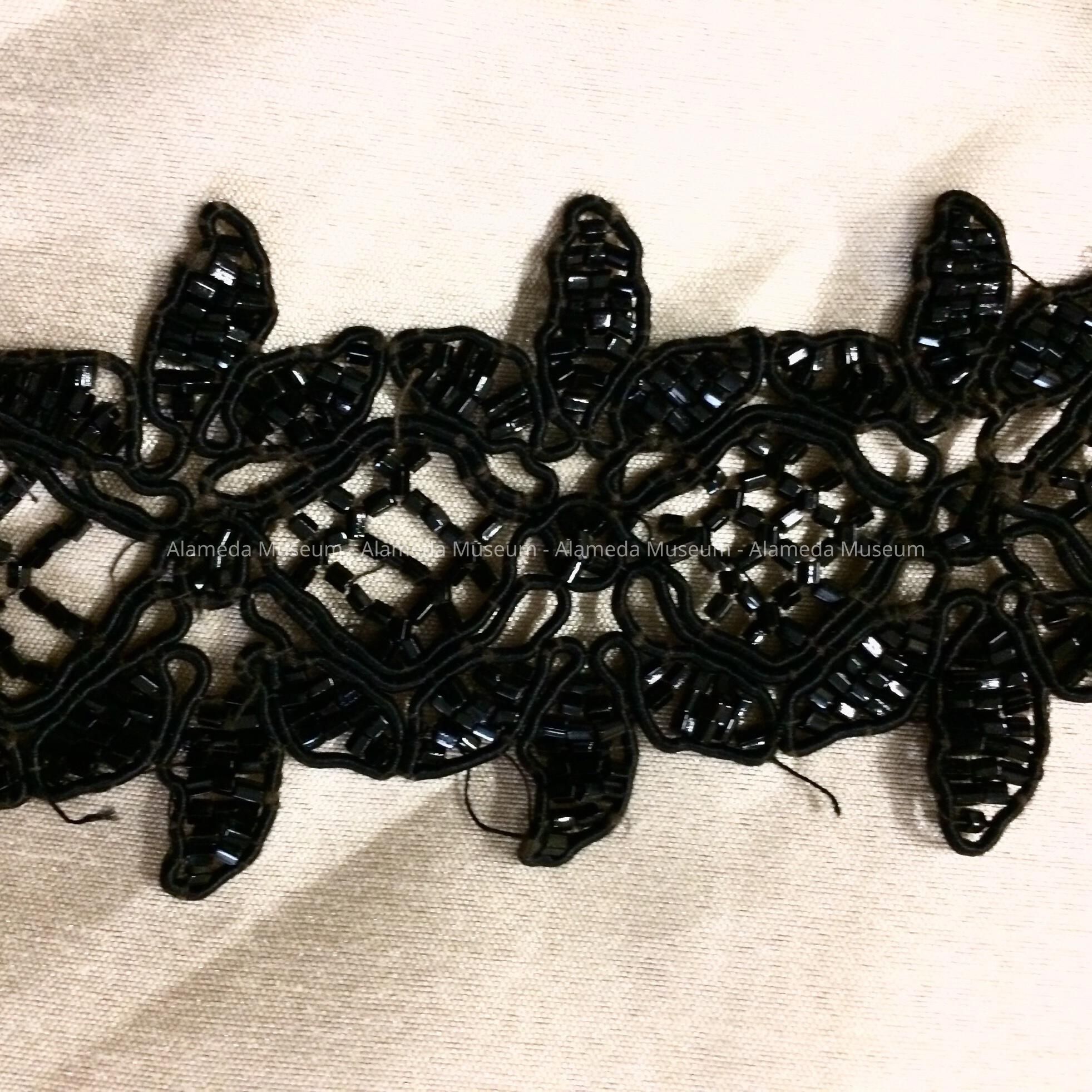 History of Object: Victorian black jet dress trim of Mrs. Henry H. Meyers, 2021 Alameda Avenue. She came to Alameda in 1894.