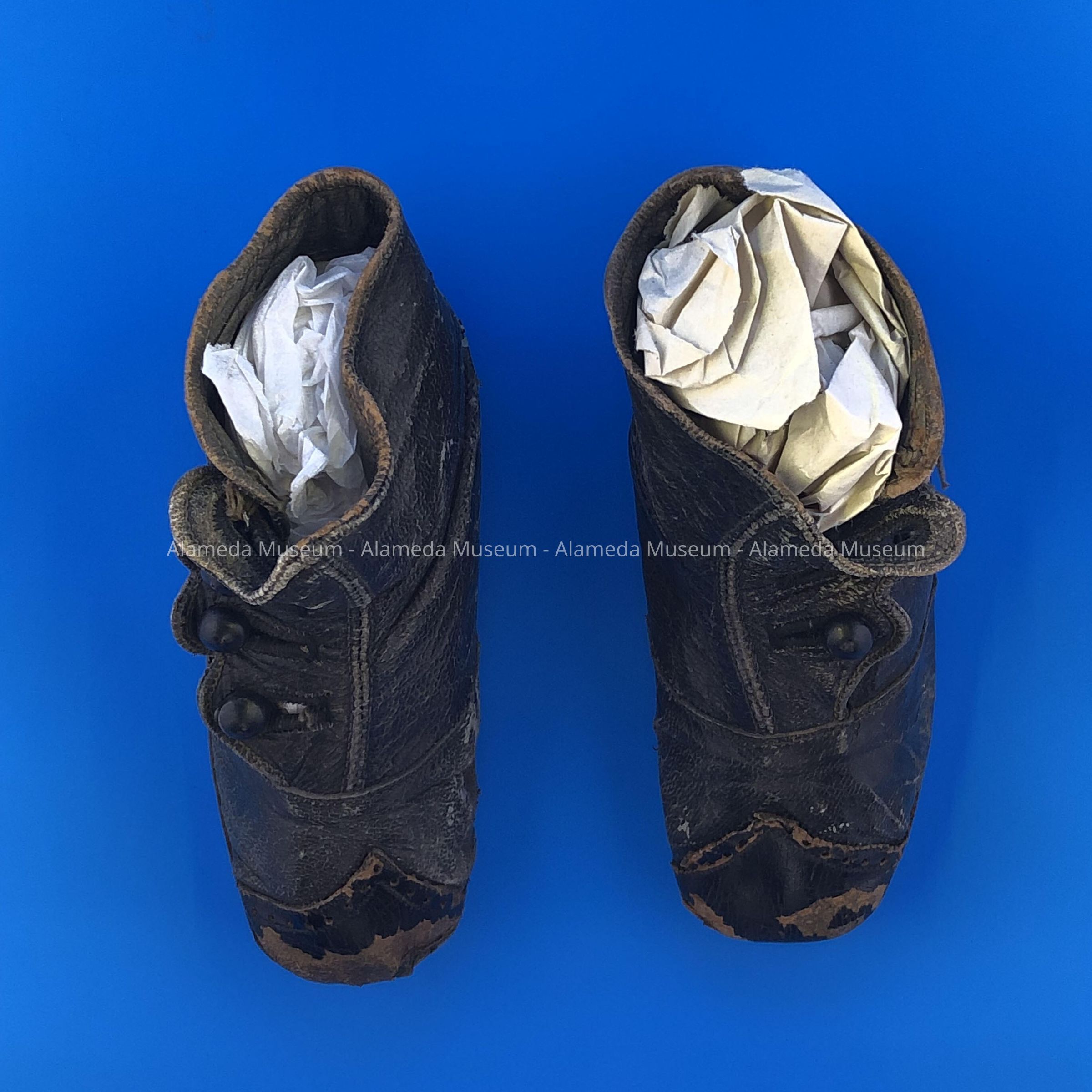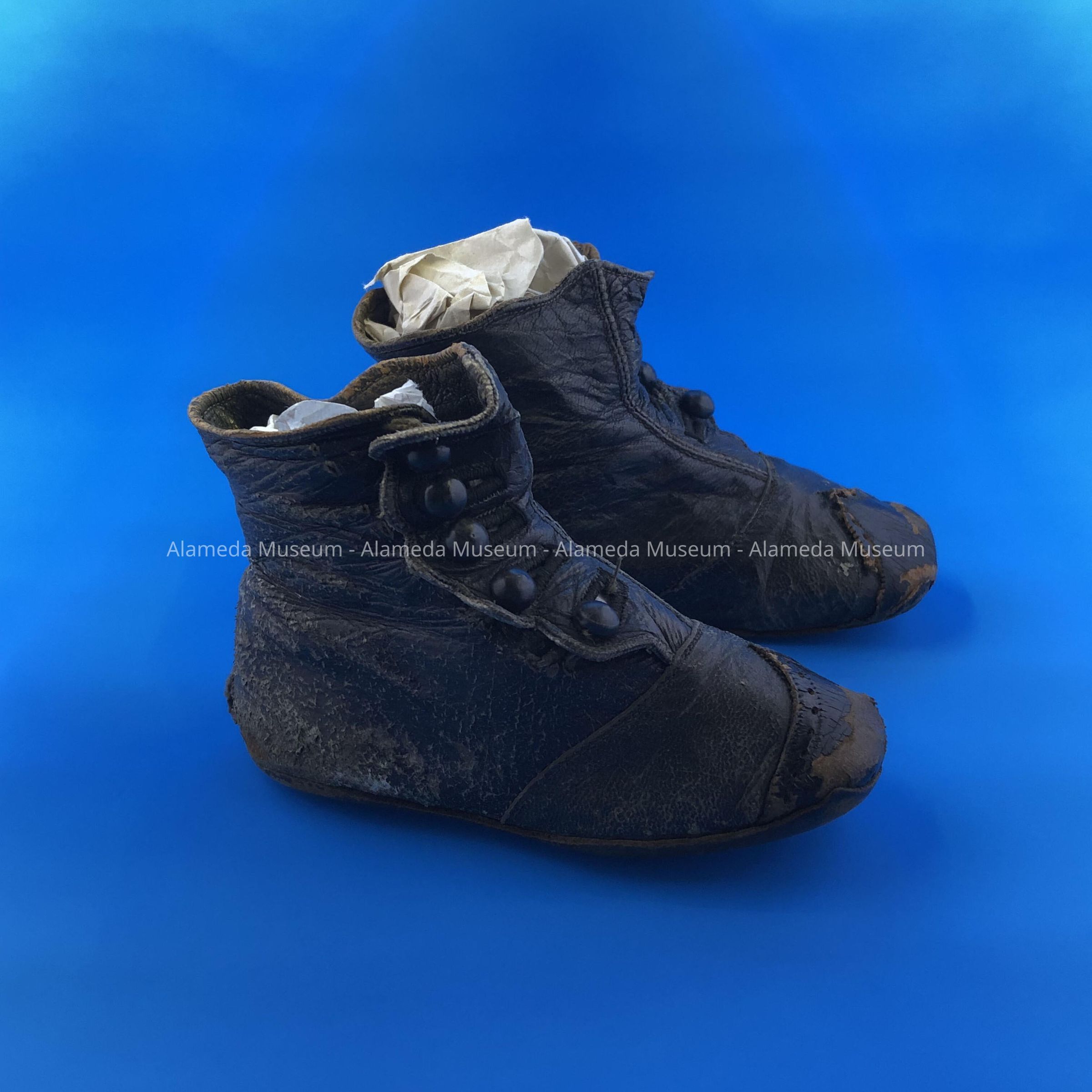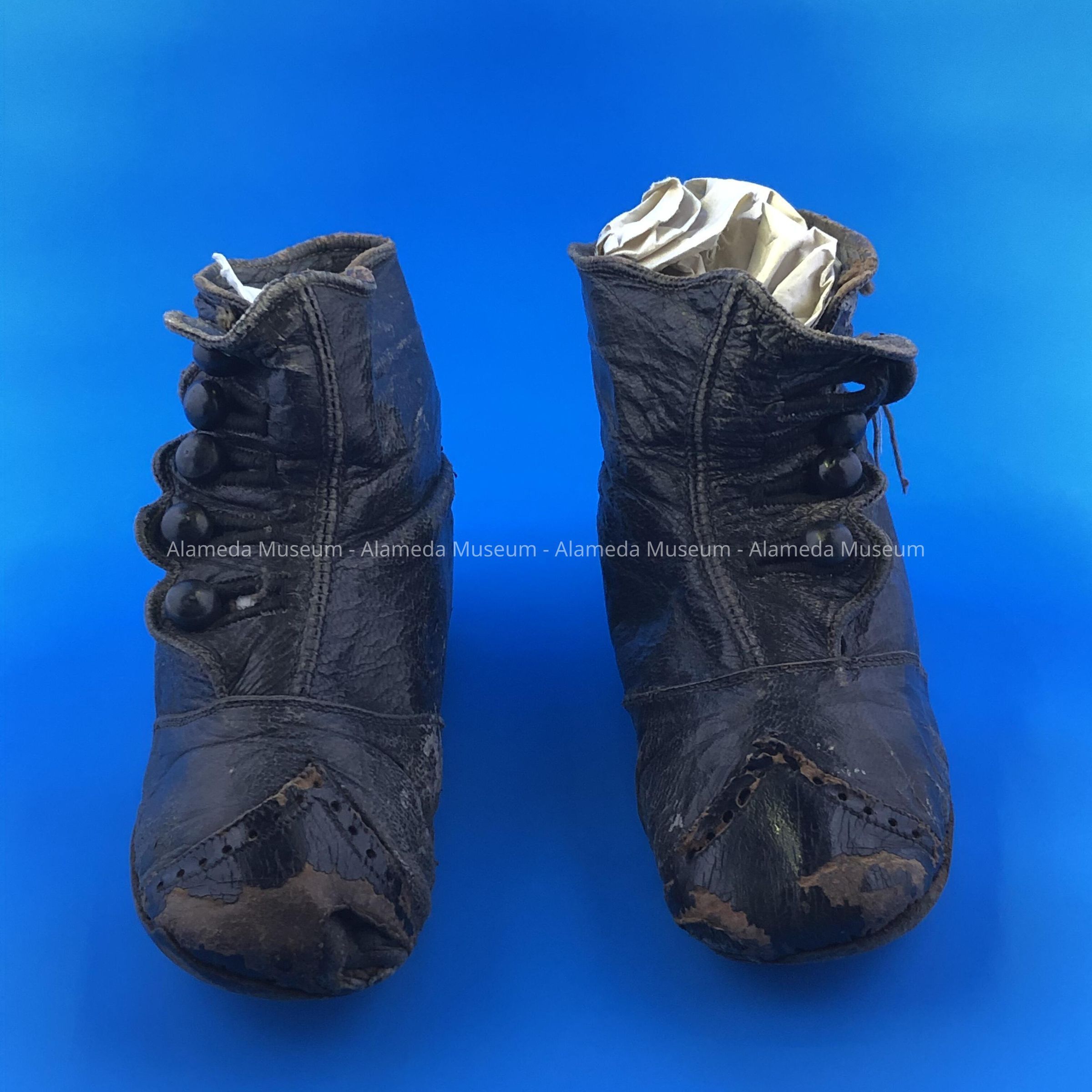 High buttoned shoes worn by Adeline Toye Cox as a small child.