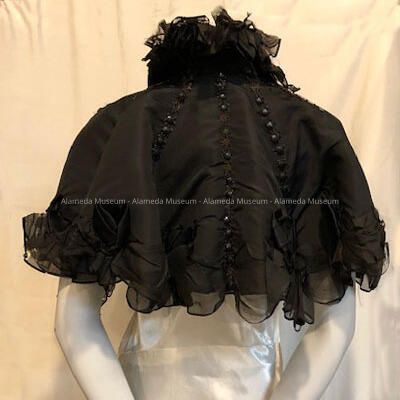 Black peau-de-soie silk capelet with black glass jet trim, c. 1880sEntry/Object ID