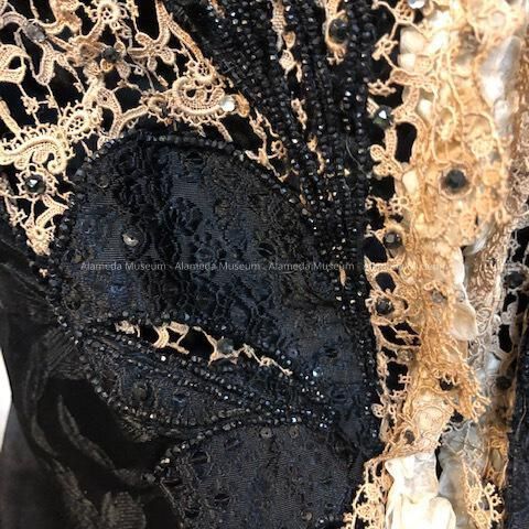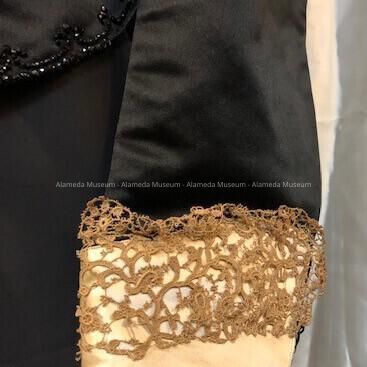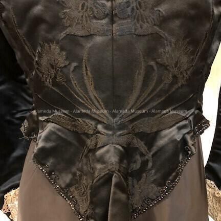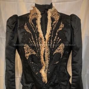 History of Object: Beautiful blouse jacket of brocade worn by Amanda, wife of Benjamin F. Lamborn, old time resident of Alameda.
