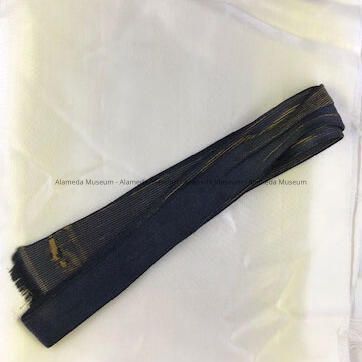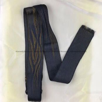 Description: Black silk fabric tie woven over a gold background which created a pattern.