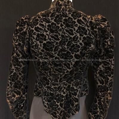 Black top with iron stays of cut velvet in floral pattern, late 1880s - early 1890sEntry/Object ID