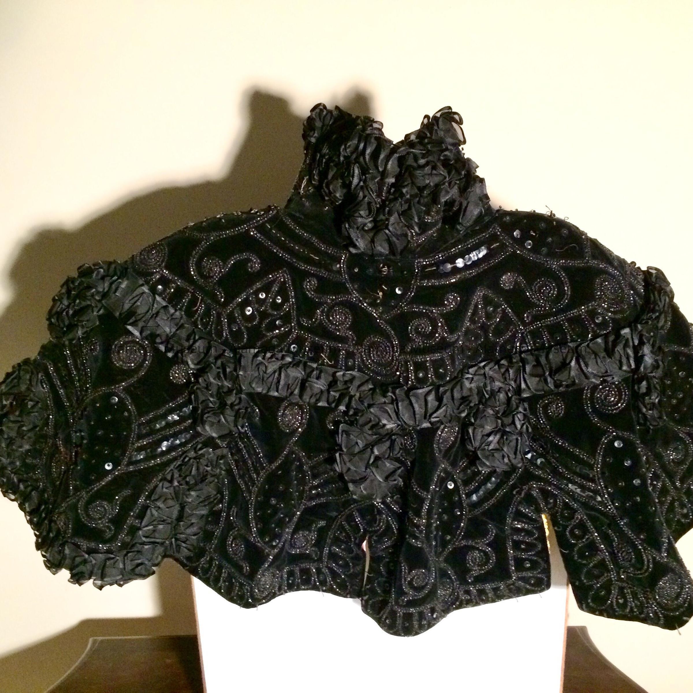 Black velvet half cape with black sequins, jet beads and ruffle, c. 1890sEntry/Object ID
