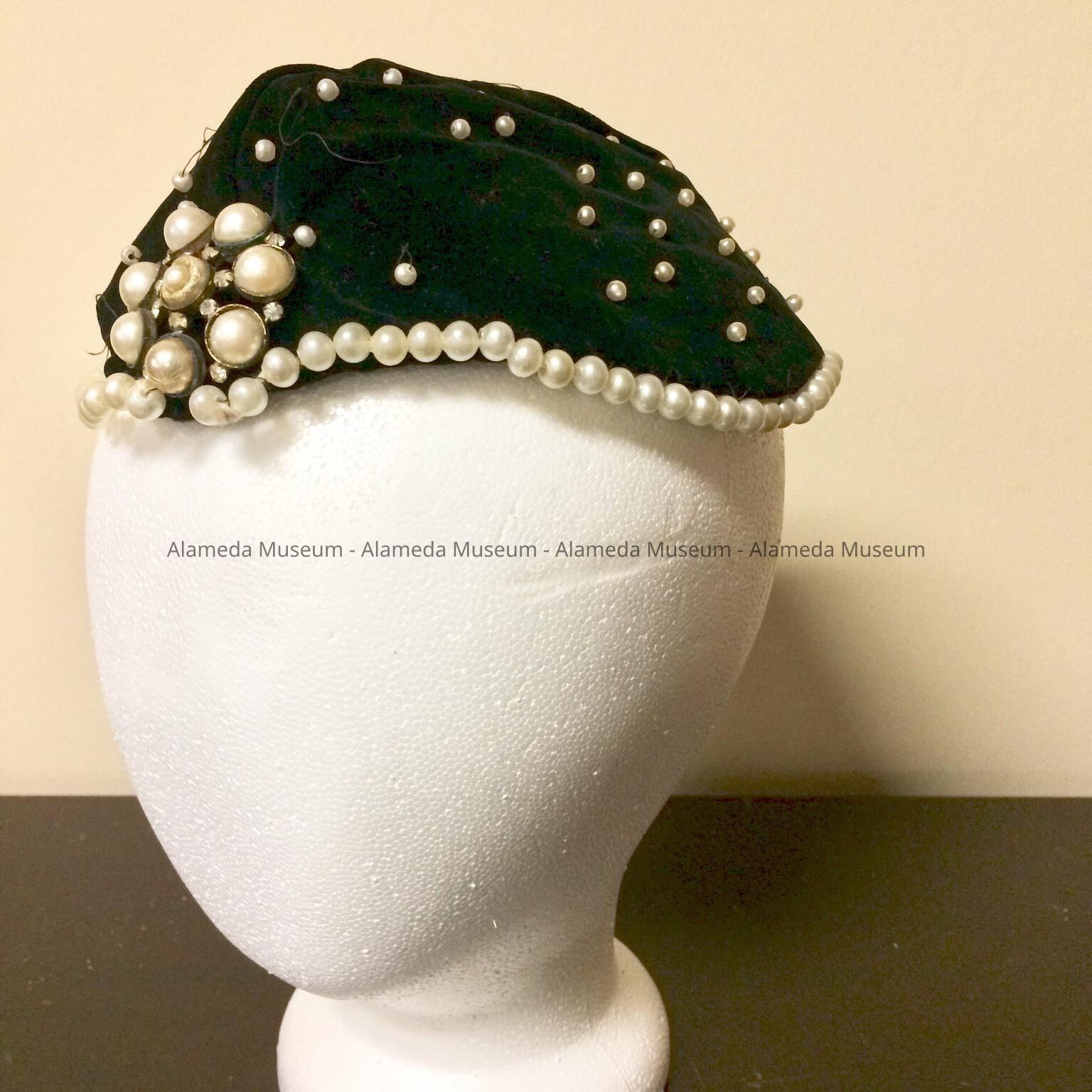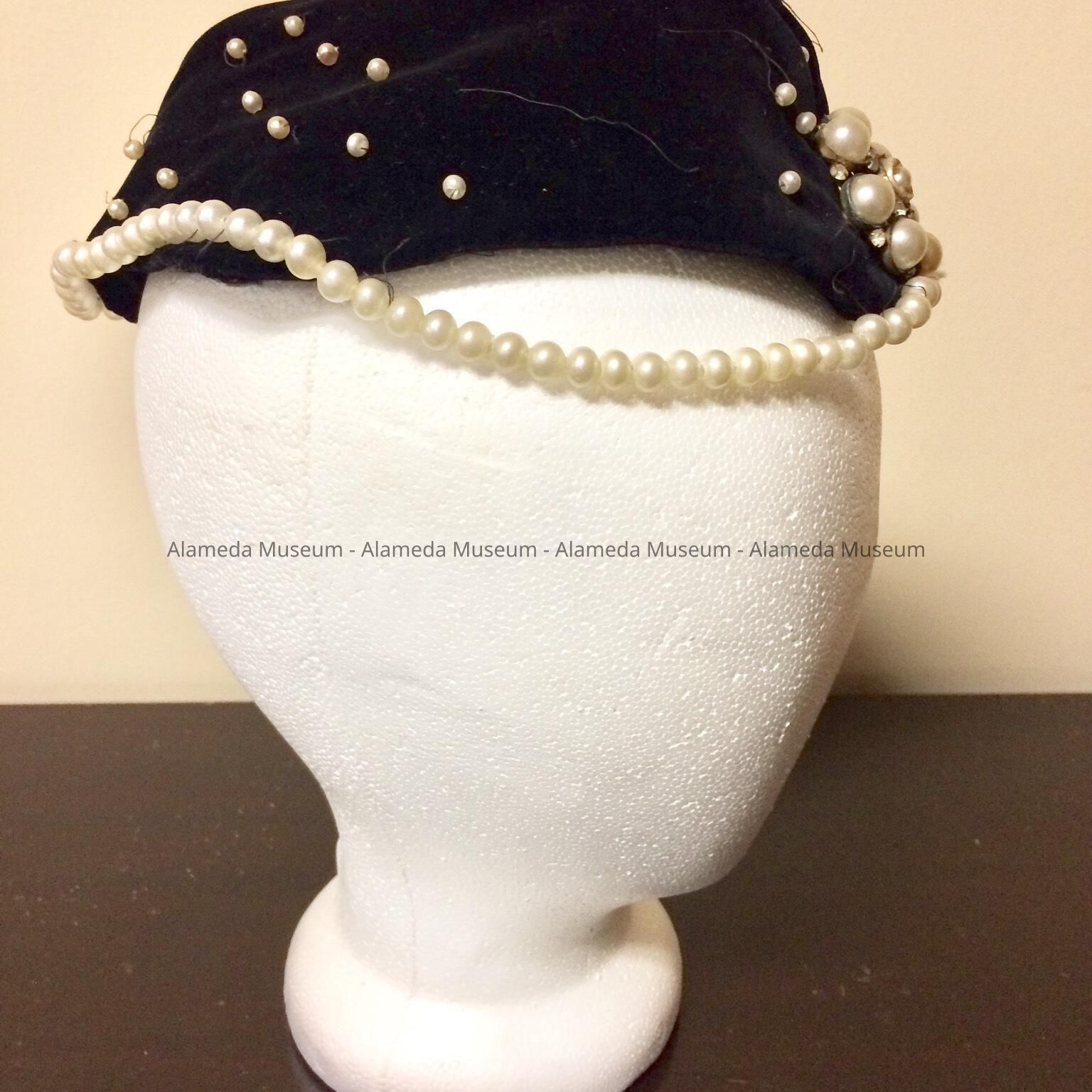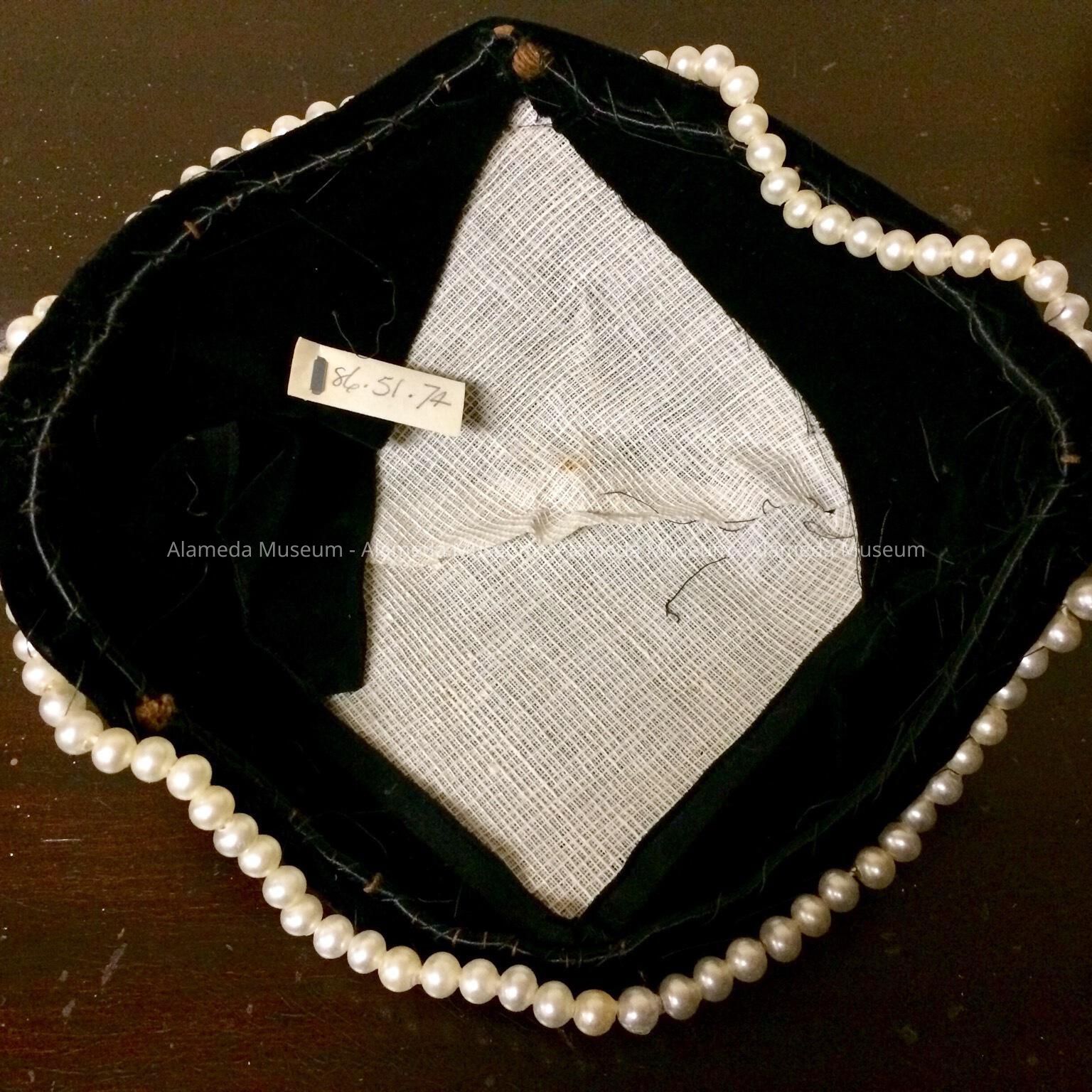 Black velvet Juliet cap trimmed with pearl beadsEntry/Object ID