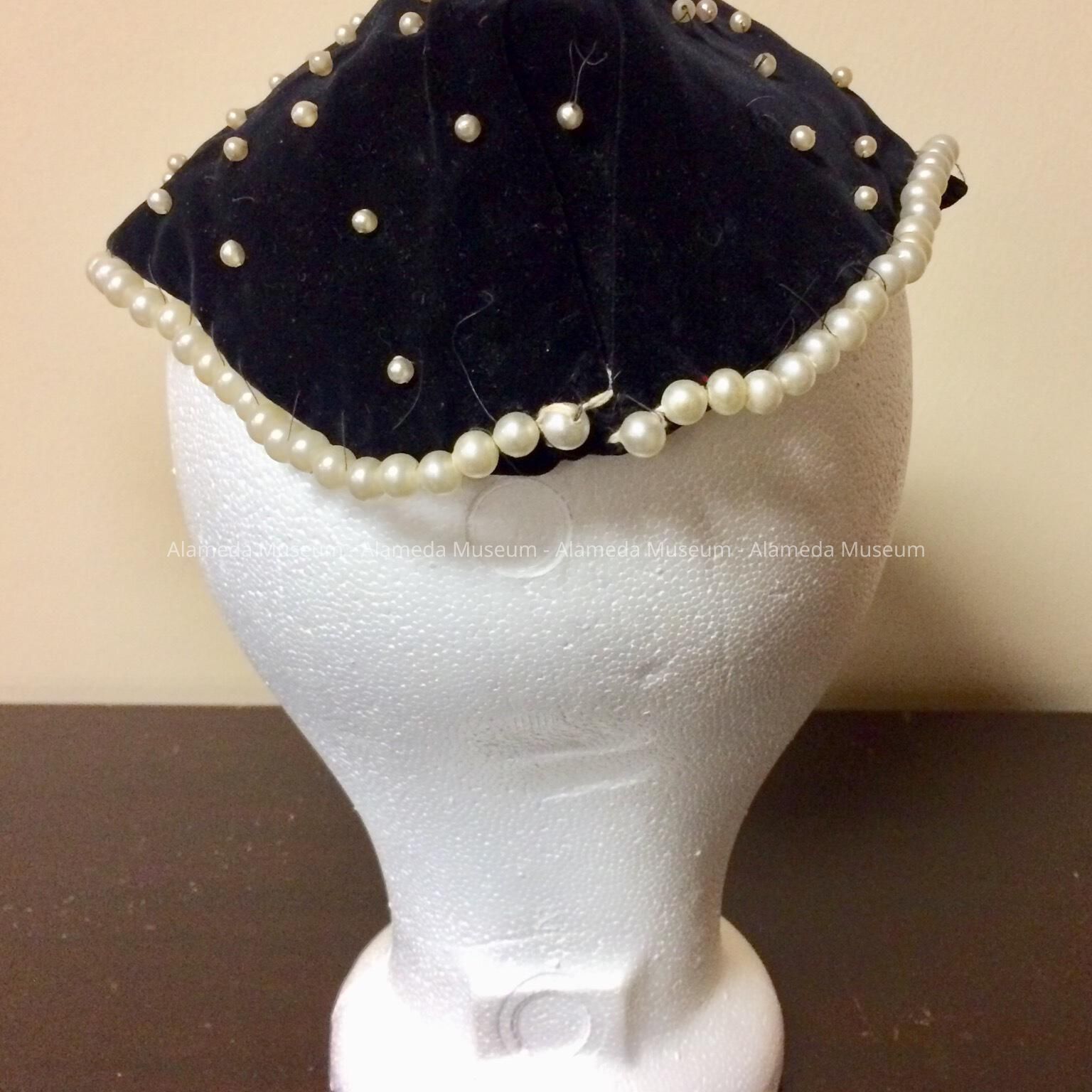 Description: Black Velvet "Juliet" style cap trimmed with pearl beads.
