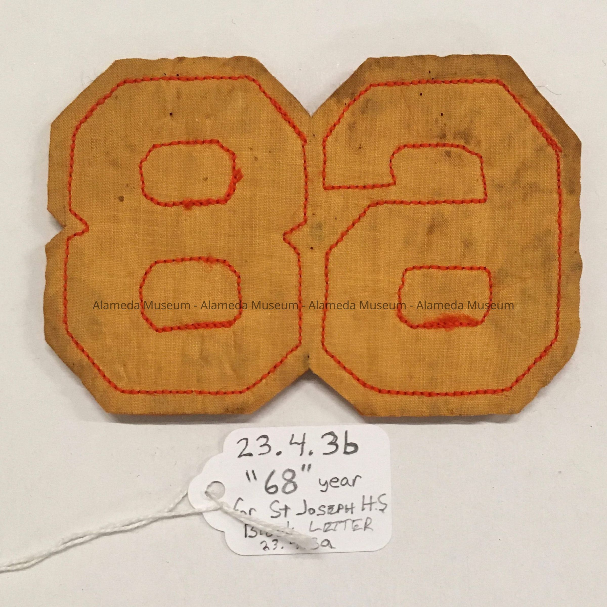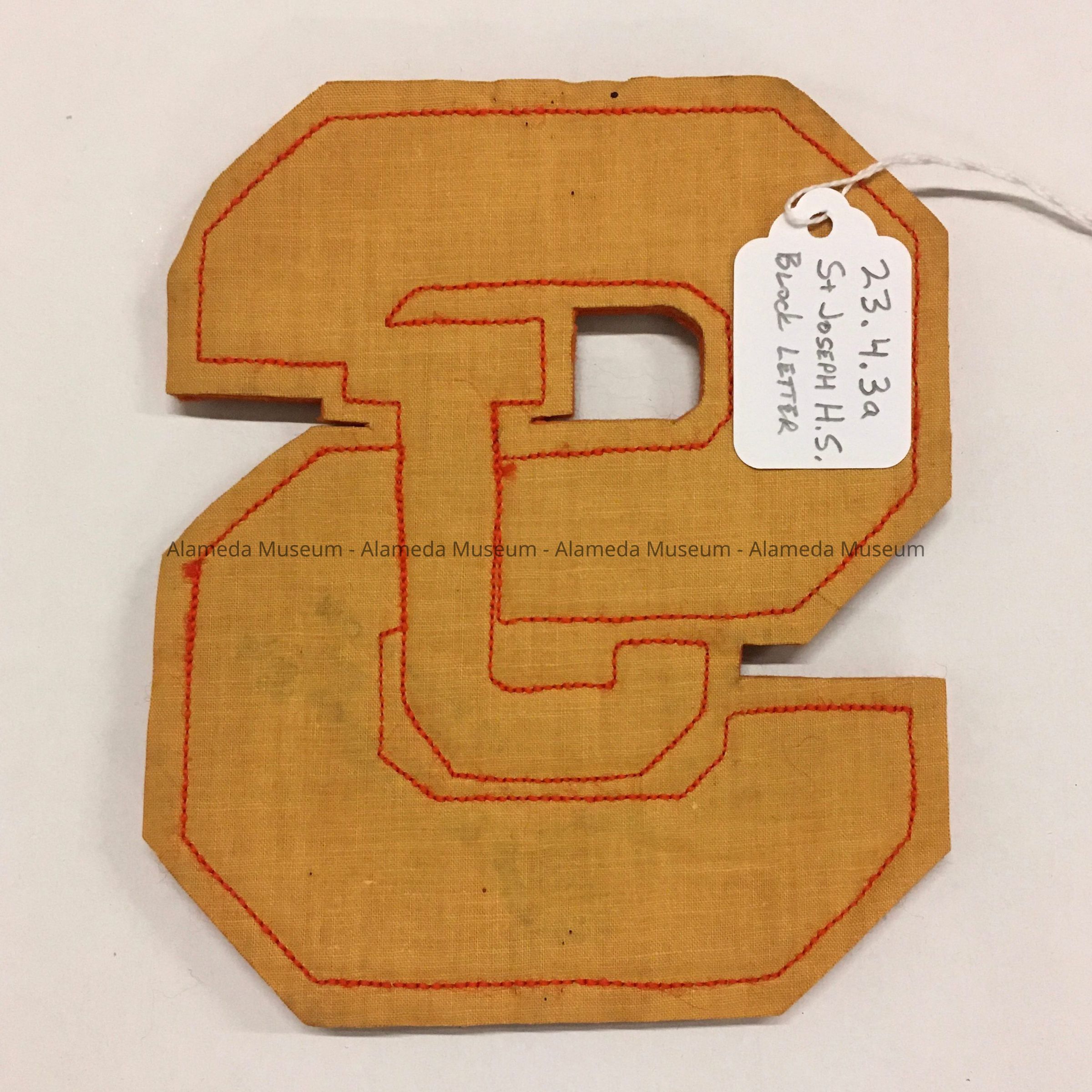 History of Object: 1968 Block Letter from St Joseph High School, intended for a sports jersey or banner.