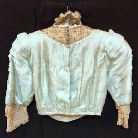 Blue Japanese silk high neck blouse with lace and embroidery, 1907-1912Entry/Object ID