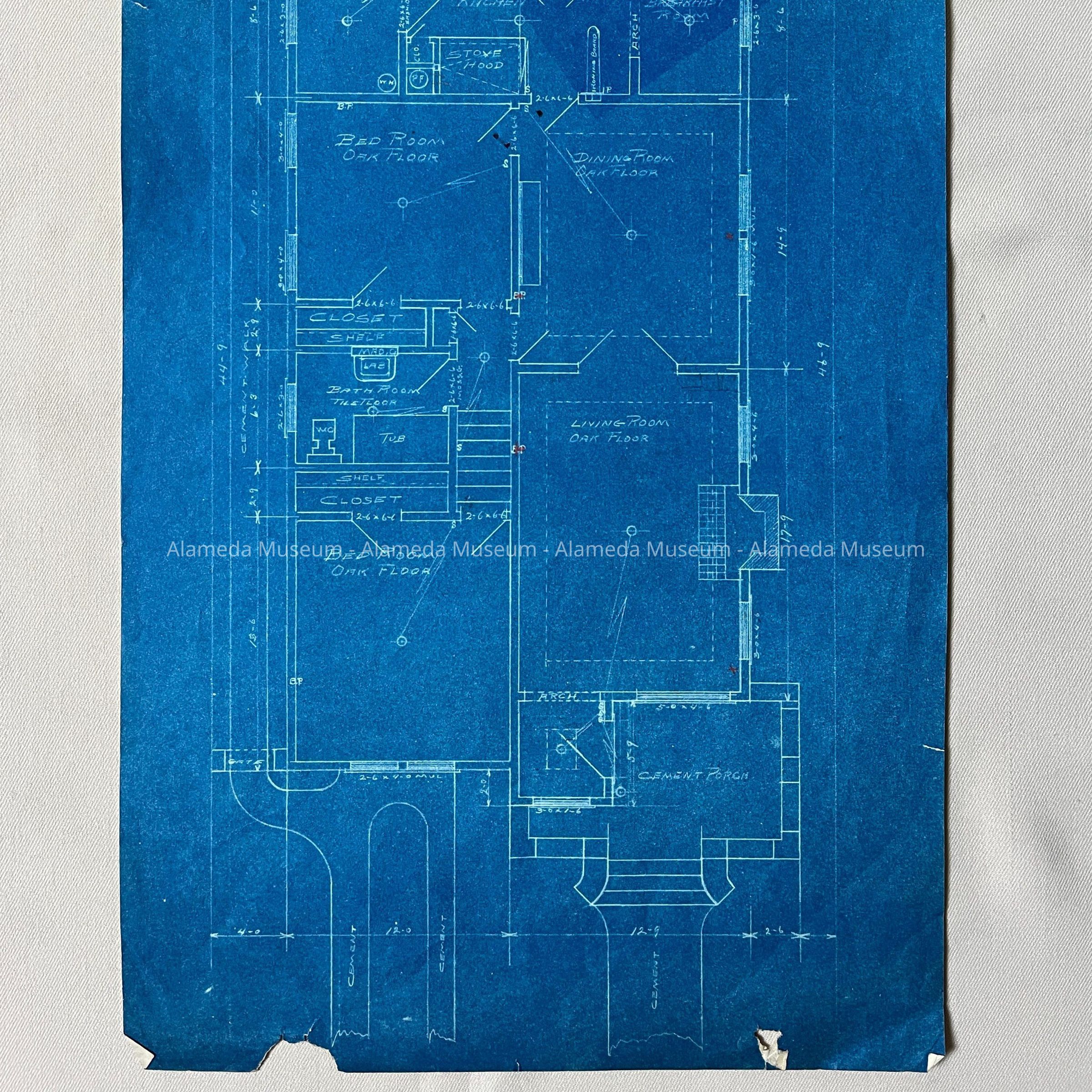 History of Objects: A blueprint likely from the attic of the Office of H.G. or C.G. Mehrtens, real estate brokers. The blueprint does not match the house at 758 Lincoln. Thiele Haight may have been a builder.