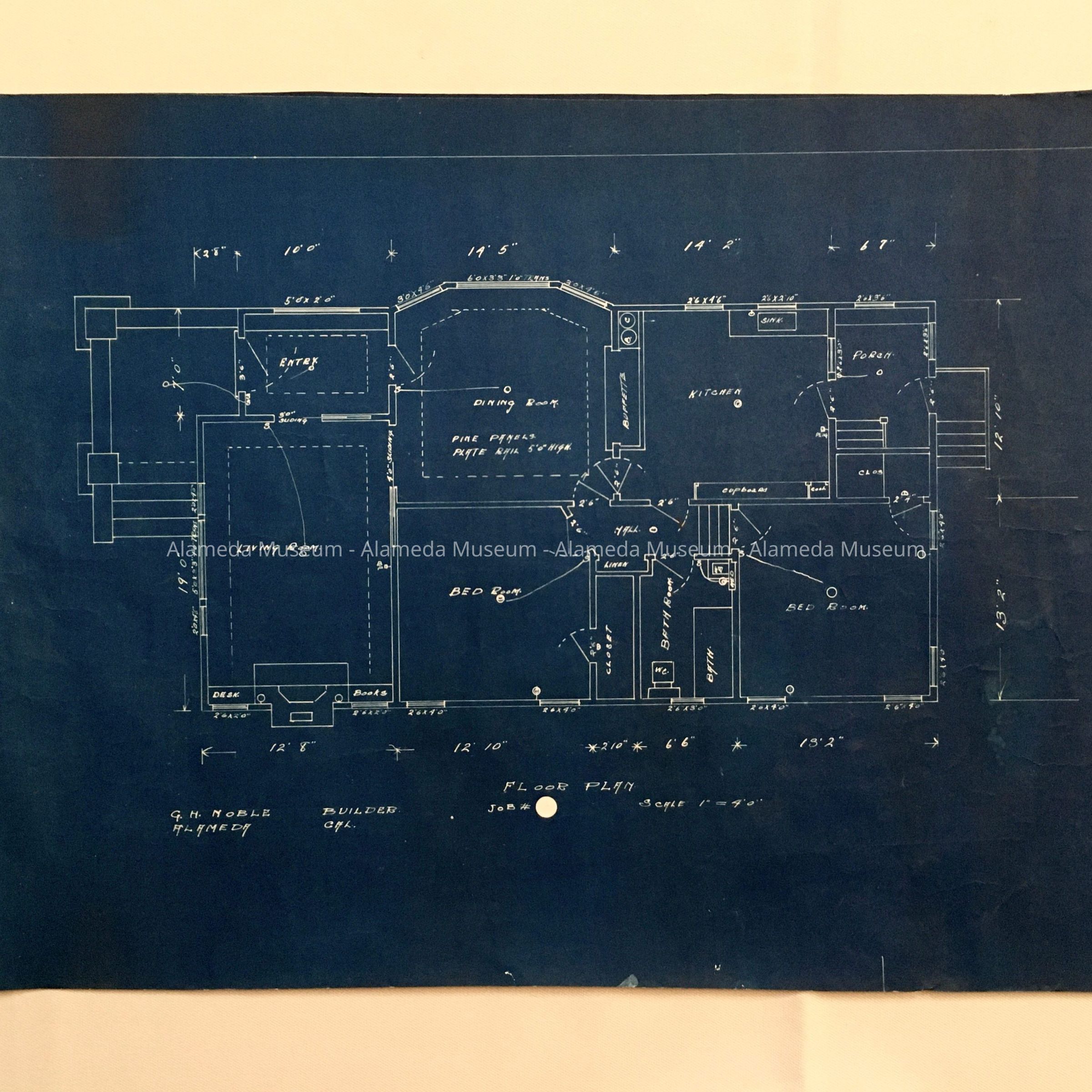 Blueprint floorplan of a bungalow, by G. H. Noble, builder, c. 1920Entry/Object ID
