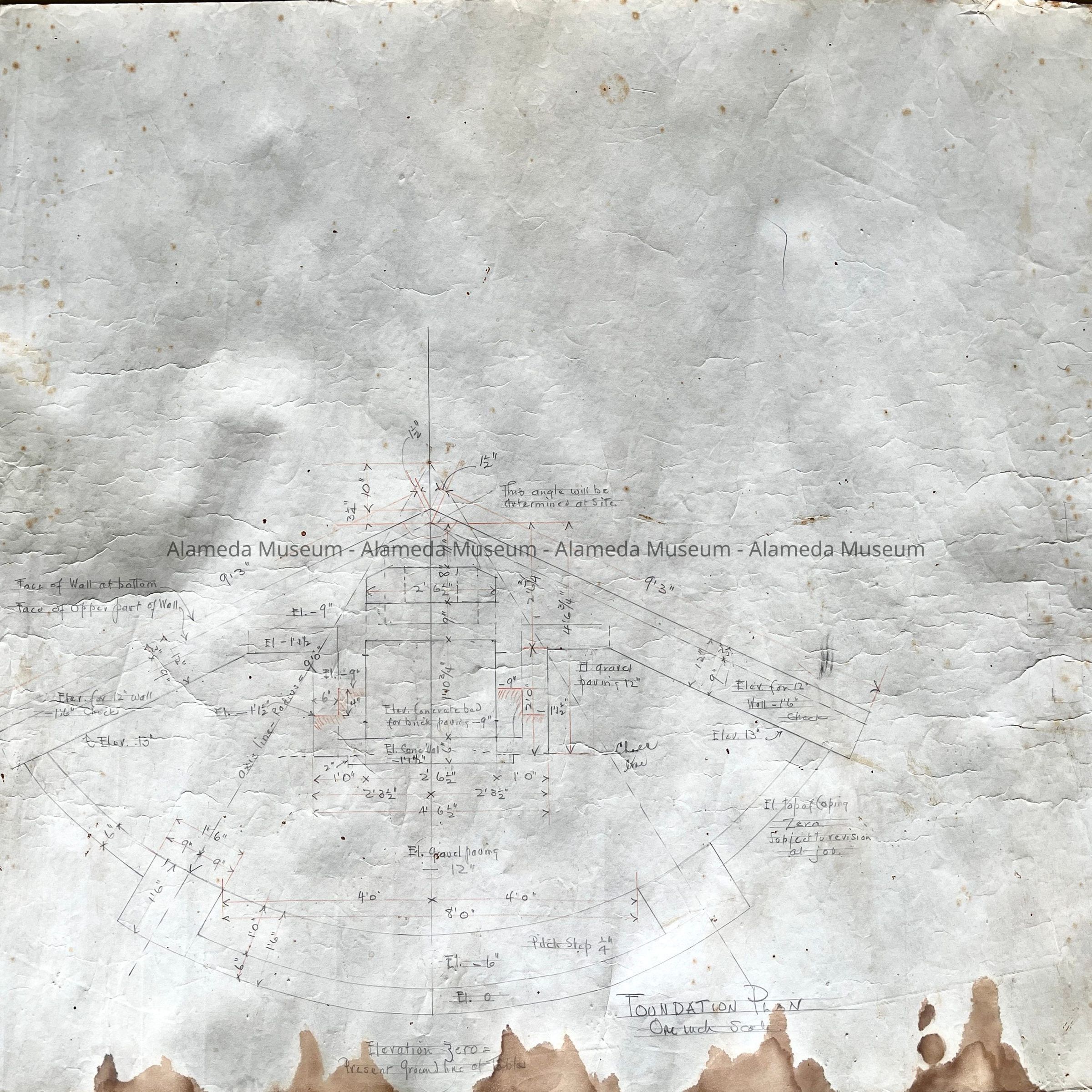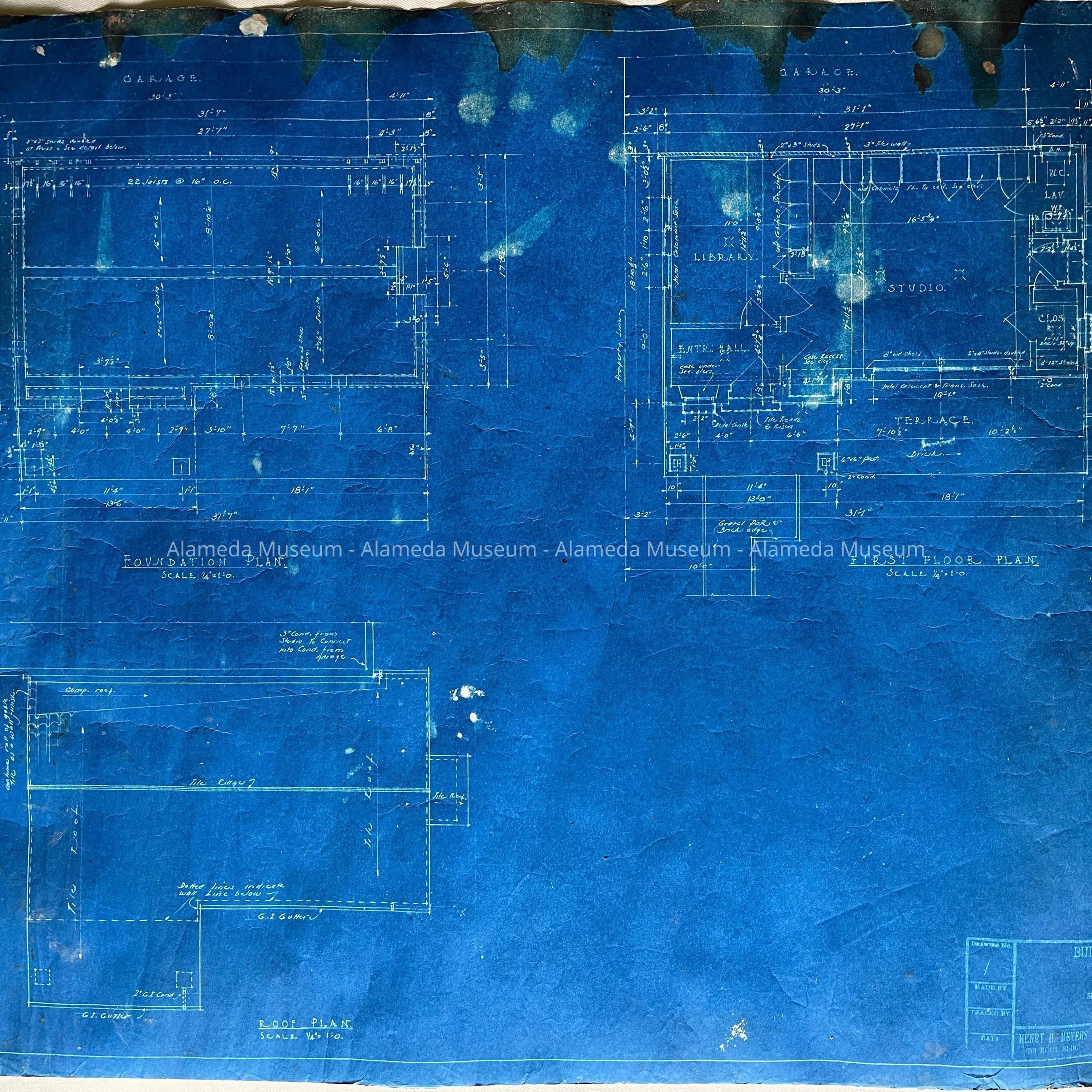 Blueprint of foundation, first floor and roof of Studio / Library annex, 2021 Alameda Ave, 1936Entry/Object ID