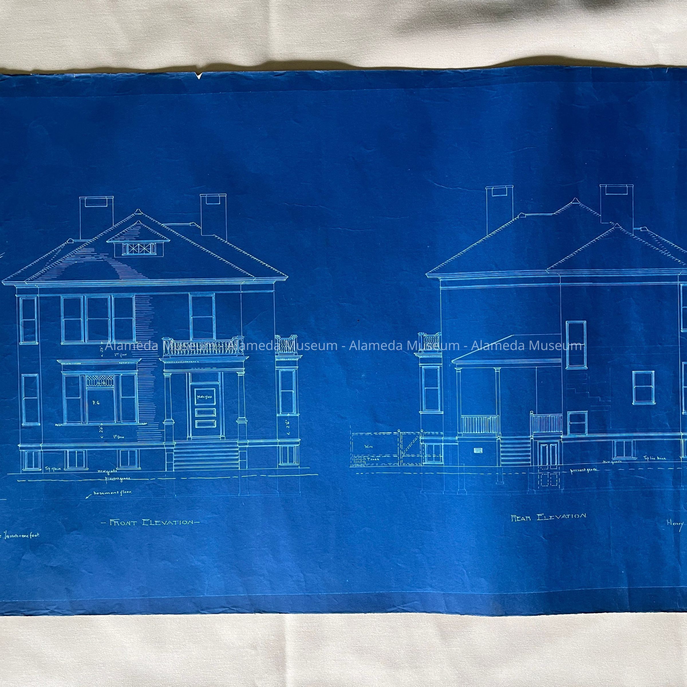 Blueprint of main facade and rear elevation of 2021 Alameda Ave, 1897Entry/Object ID