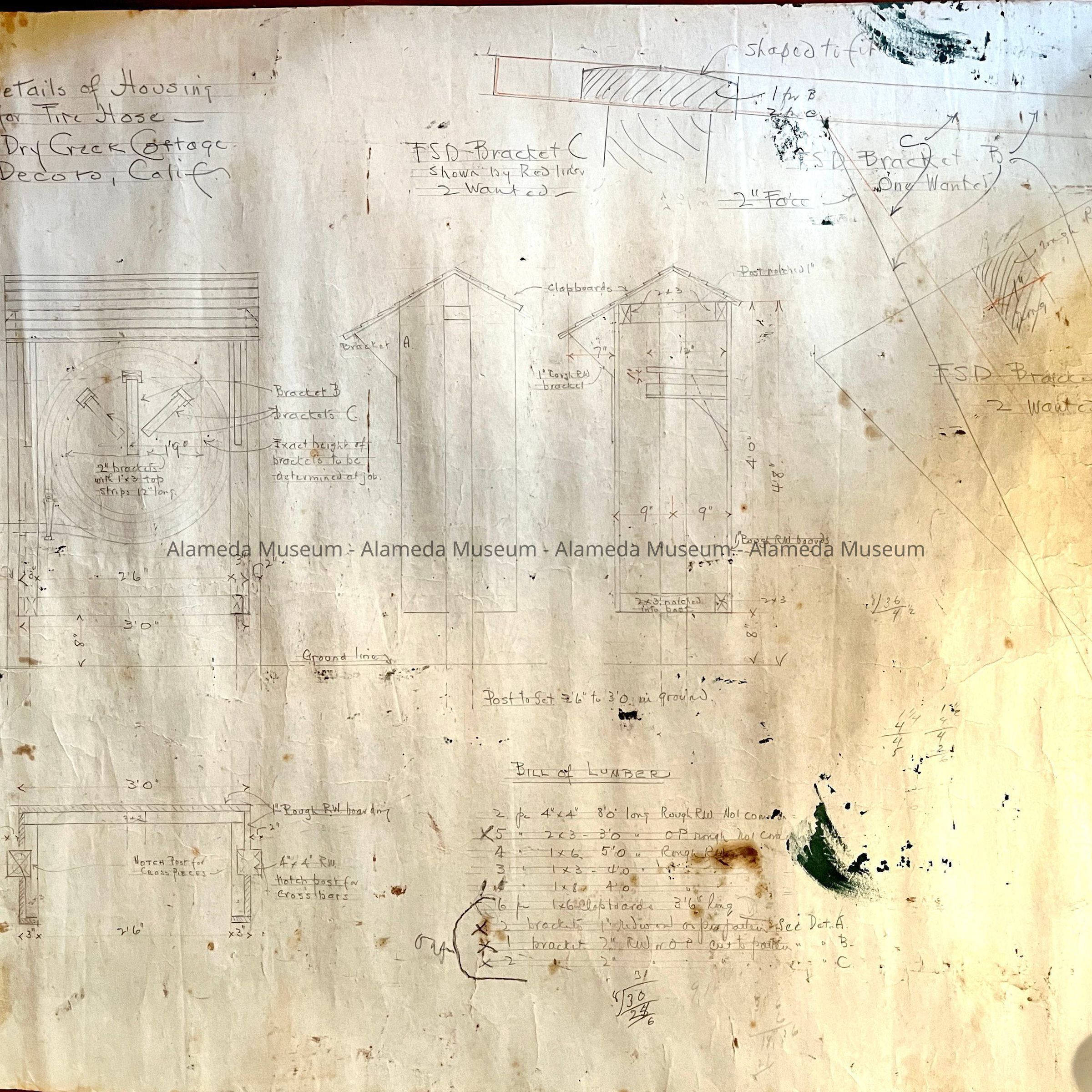 Blueprint of main facade studio and library annex at 2021 Alameda Ave, 1936Entry/Object ID