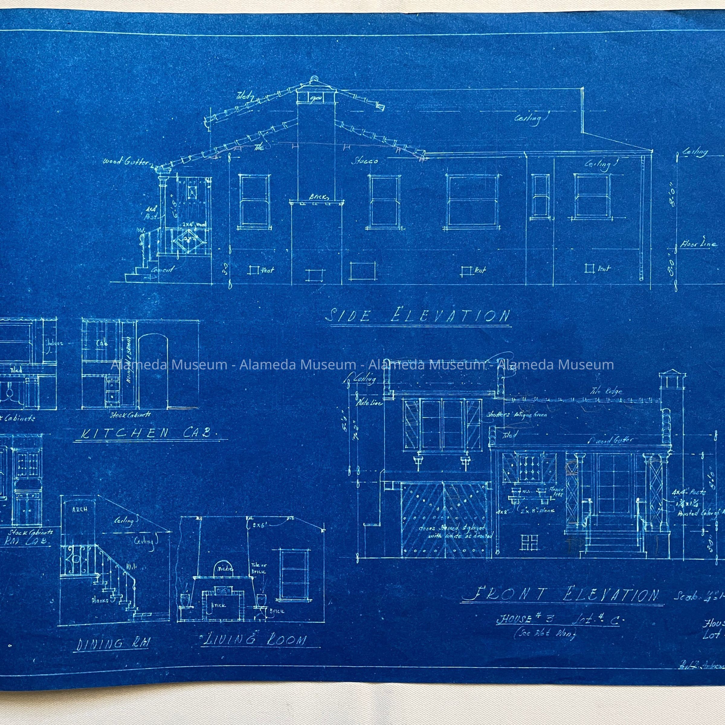 History of Object: Blueprints of a residence in the currently known as 1117 Buena Vista Ave, built 1930. Blueprints were found, uncataloged, in the museum storage area.