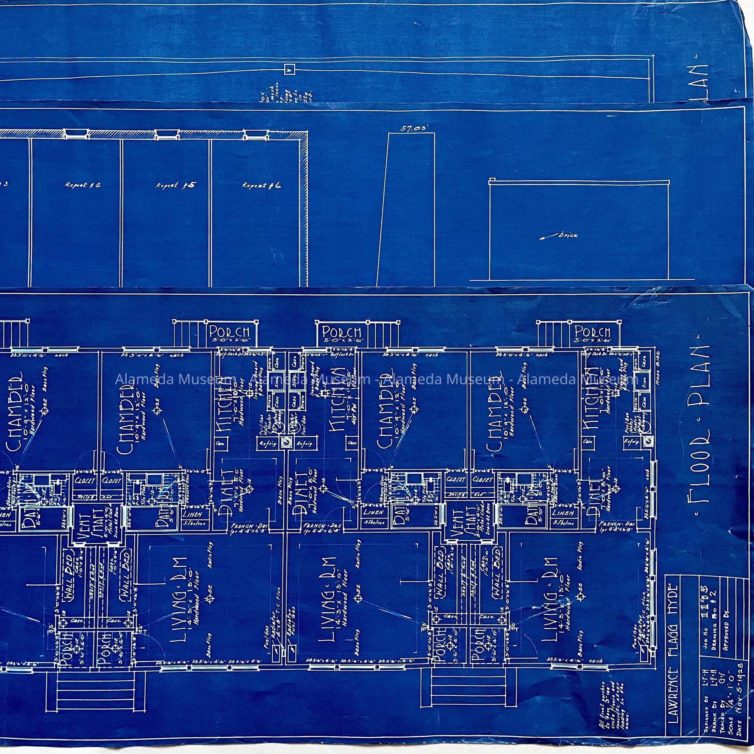 A SERIES OF BLUEPRINTS SIGNED BY THE ARCHITECT LAWRENCE FLAGG HYDE.