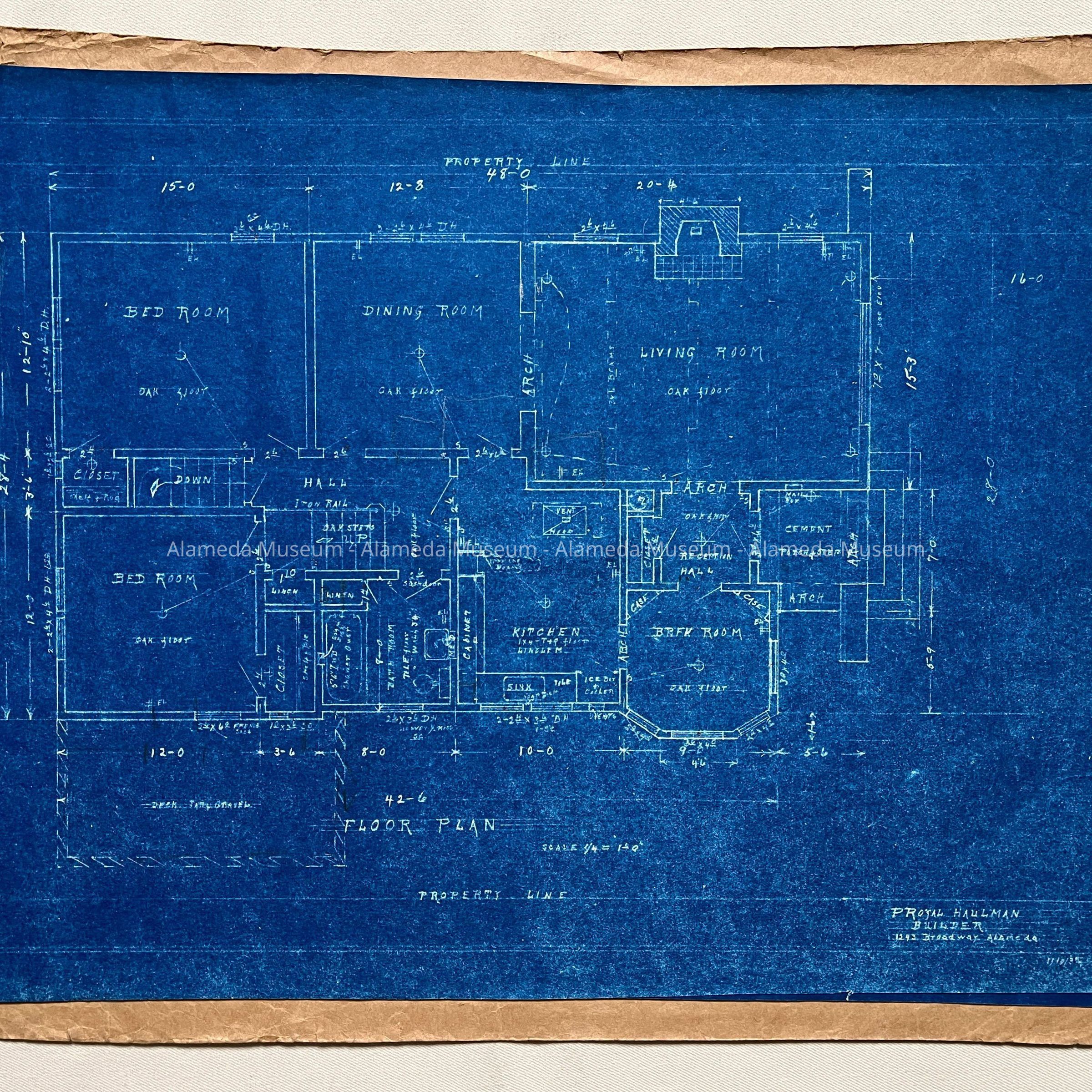 EXTERIOR ELEVATION PLUS FLOOR PLAN FOR P ROYAL HAULMAN, BUILDER. DATED OCTOBER 10, 1932. THE RESIDENCE IS A MEDITERRANEAN-STYLE STRUCTURE. NO INDICATION OF CONSTRUCTION SITE IS NOTED.