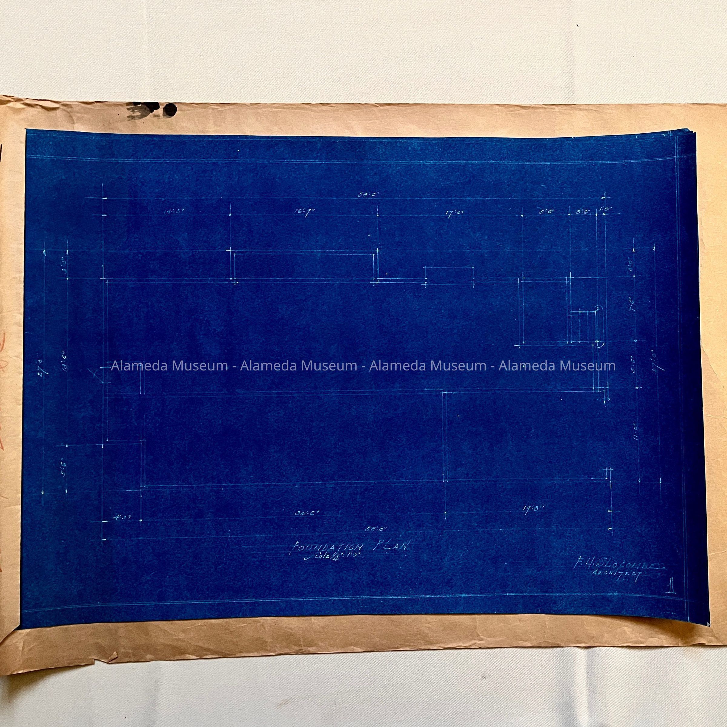 FOUNDATION FLOOR PLAN AND EXTERIOR OF A RESIDENCE AT LOT #4, 226 SANTA CLARA AVENUE, ALAMEDA, CALIFORNIA. SIGNED BY F H SLOCOME, ARCHITECT.