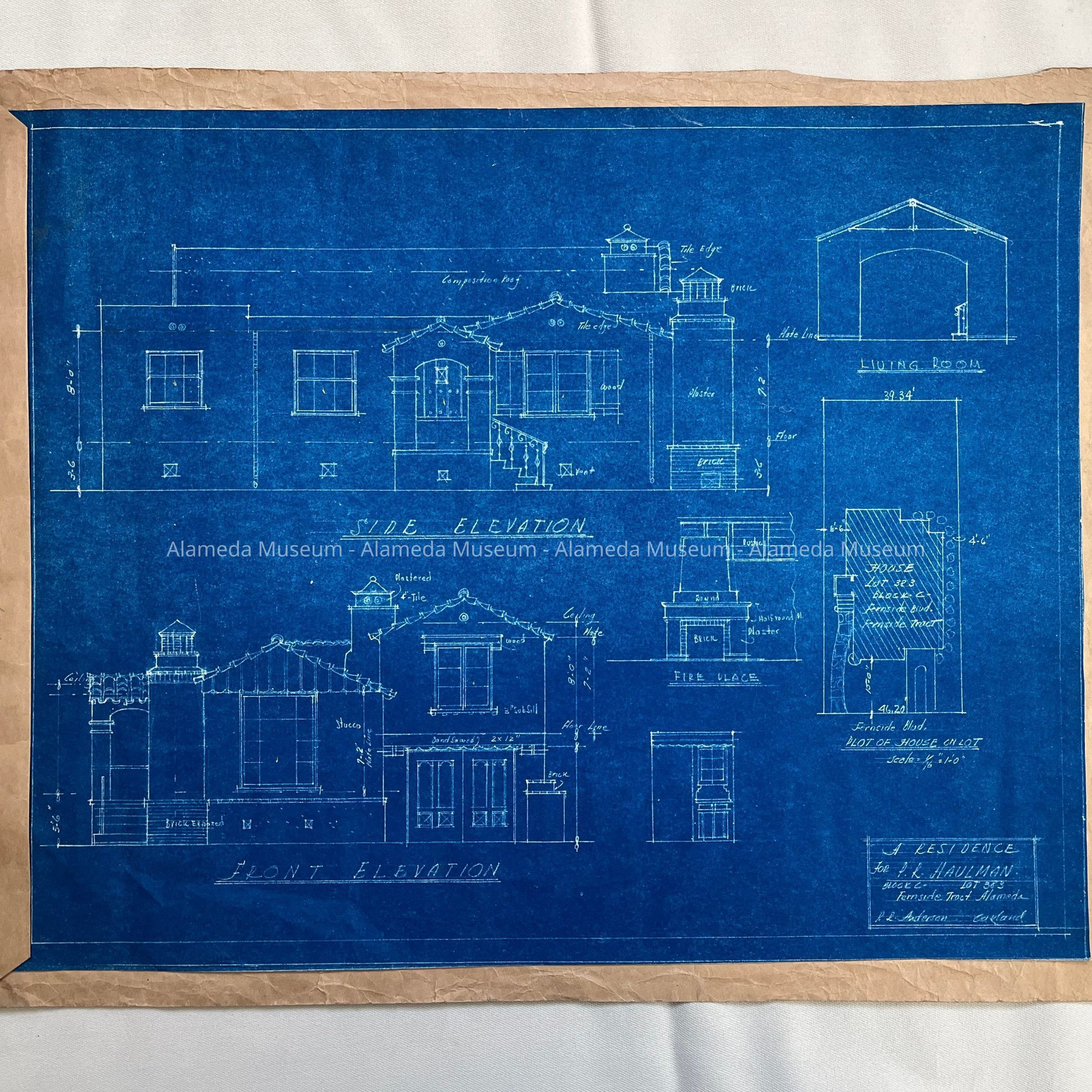 BLUEPRINTS FOR A RESIDENCE FOR P R HAULMAN, LOT #385, FERNSIDE TRACT, ALAMEDA, CALIFORNIA. P R ANDERSON, ARCHITECT, OAKLAND, CA.