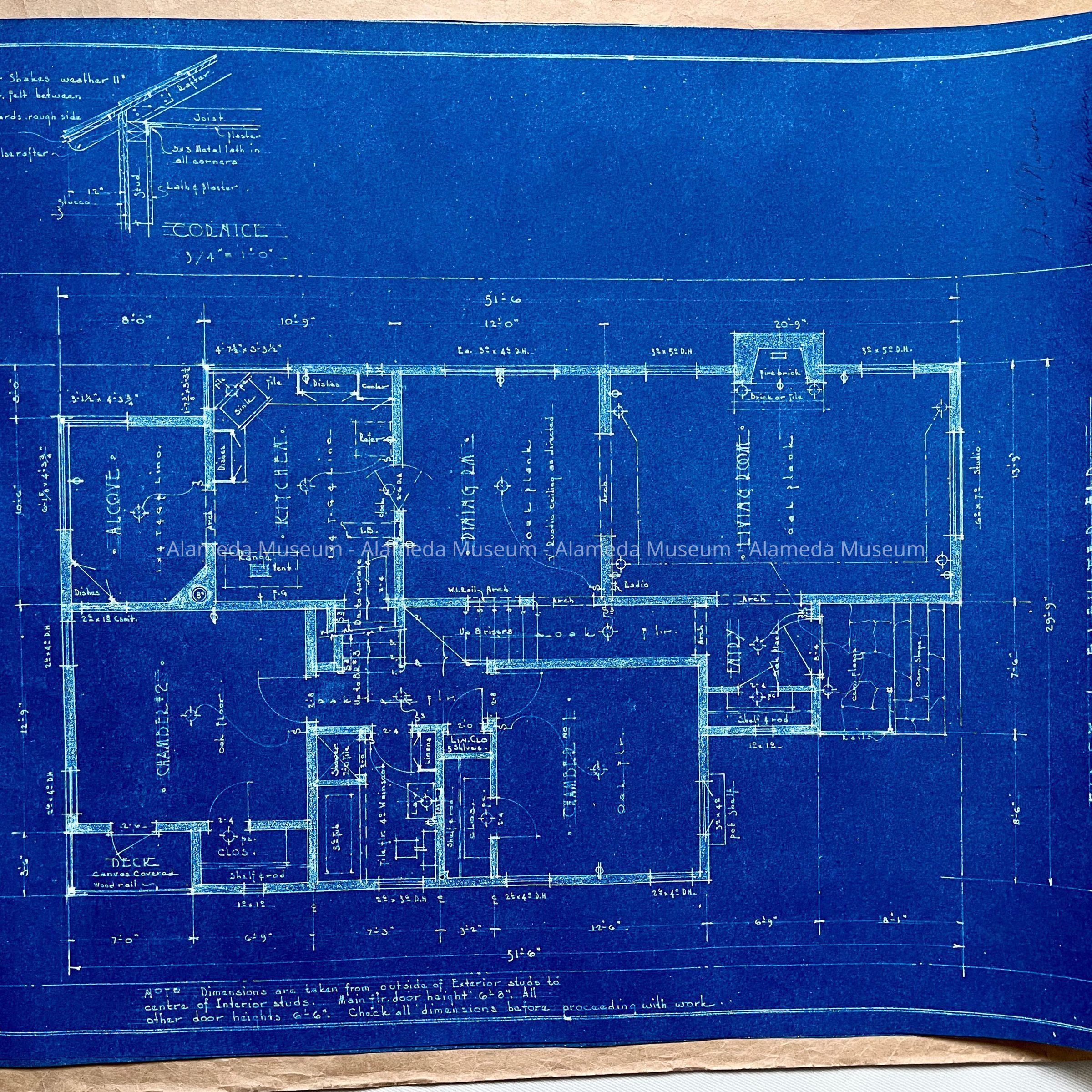 Blueprints for a residence, signed by James E. Rainey, before 1952Entry/Object ID