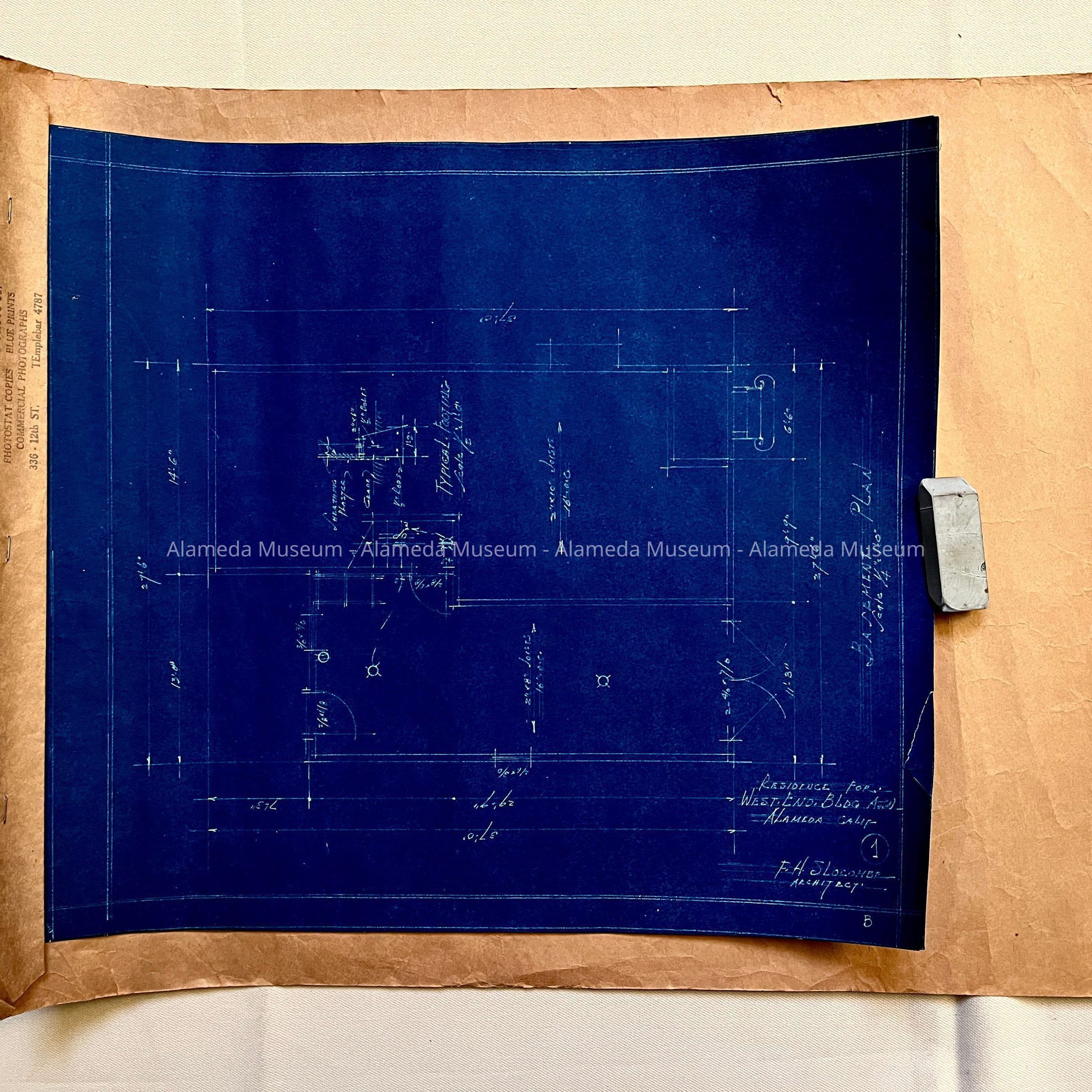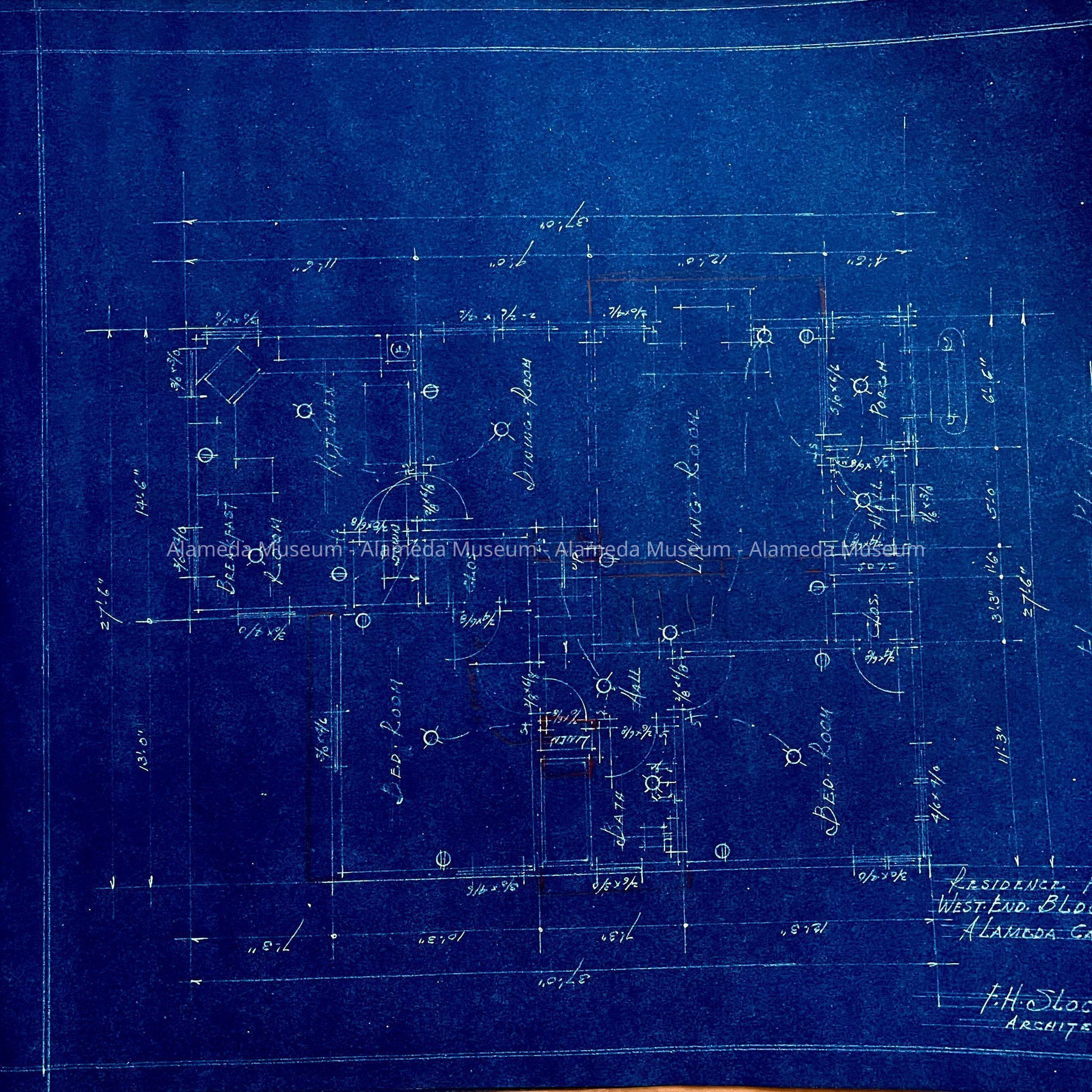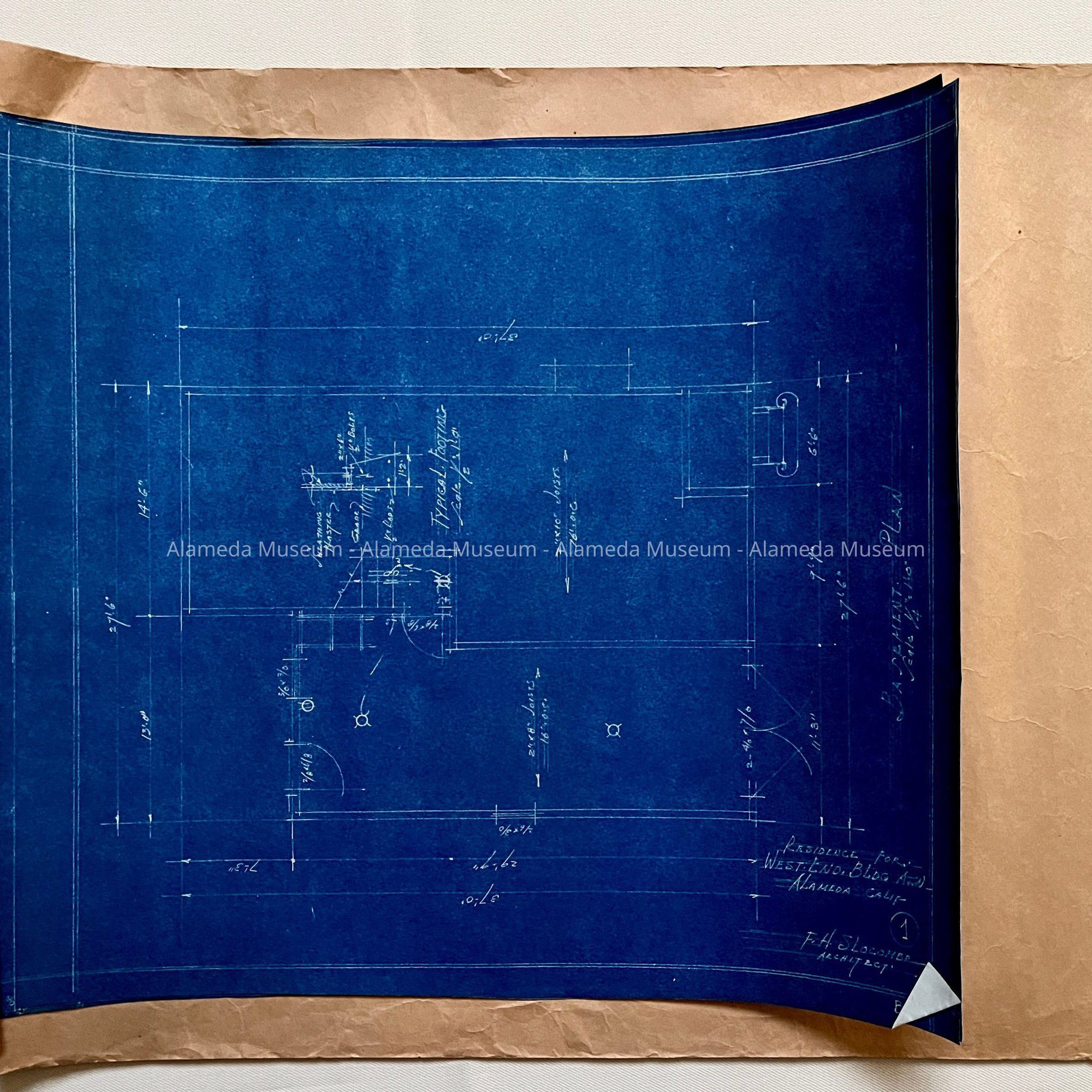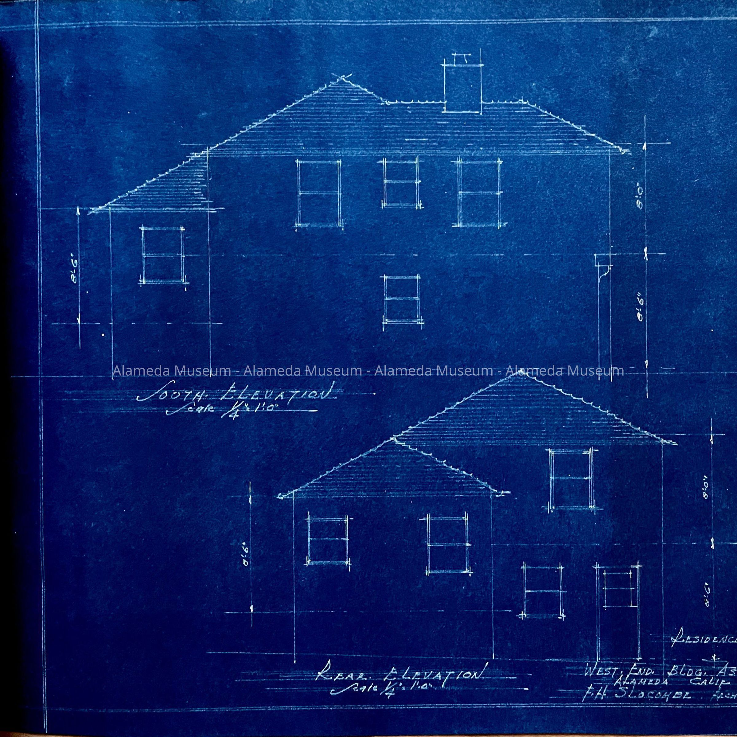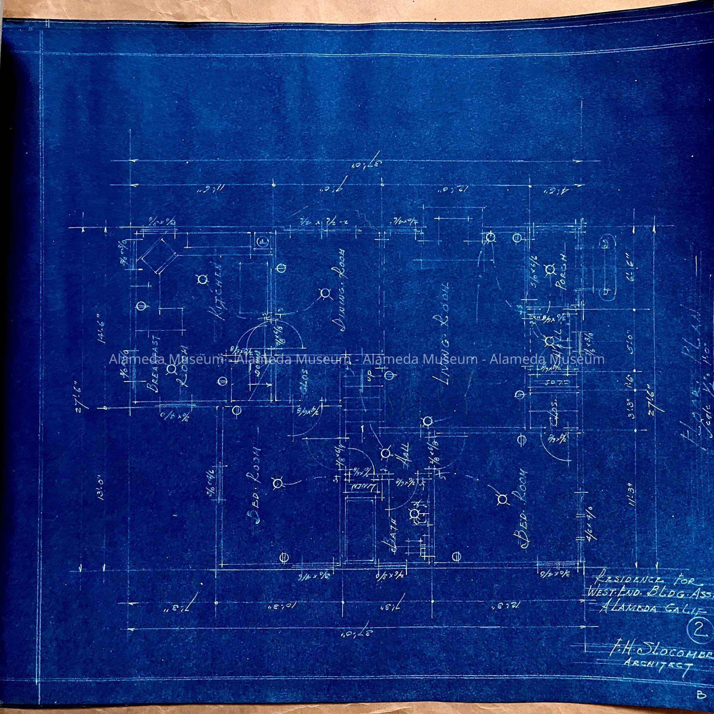 BLUEPRINTS FOR A RESIDENCE TO ACCOMMODATE THE WEST END BUILDING ASSOCIATION, FH SLOCOME, ARCHITECT. POSSIBLE LOCATION ON GRAND STREET IN ALAMEDA, CALIFORNIA.