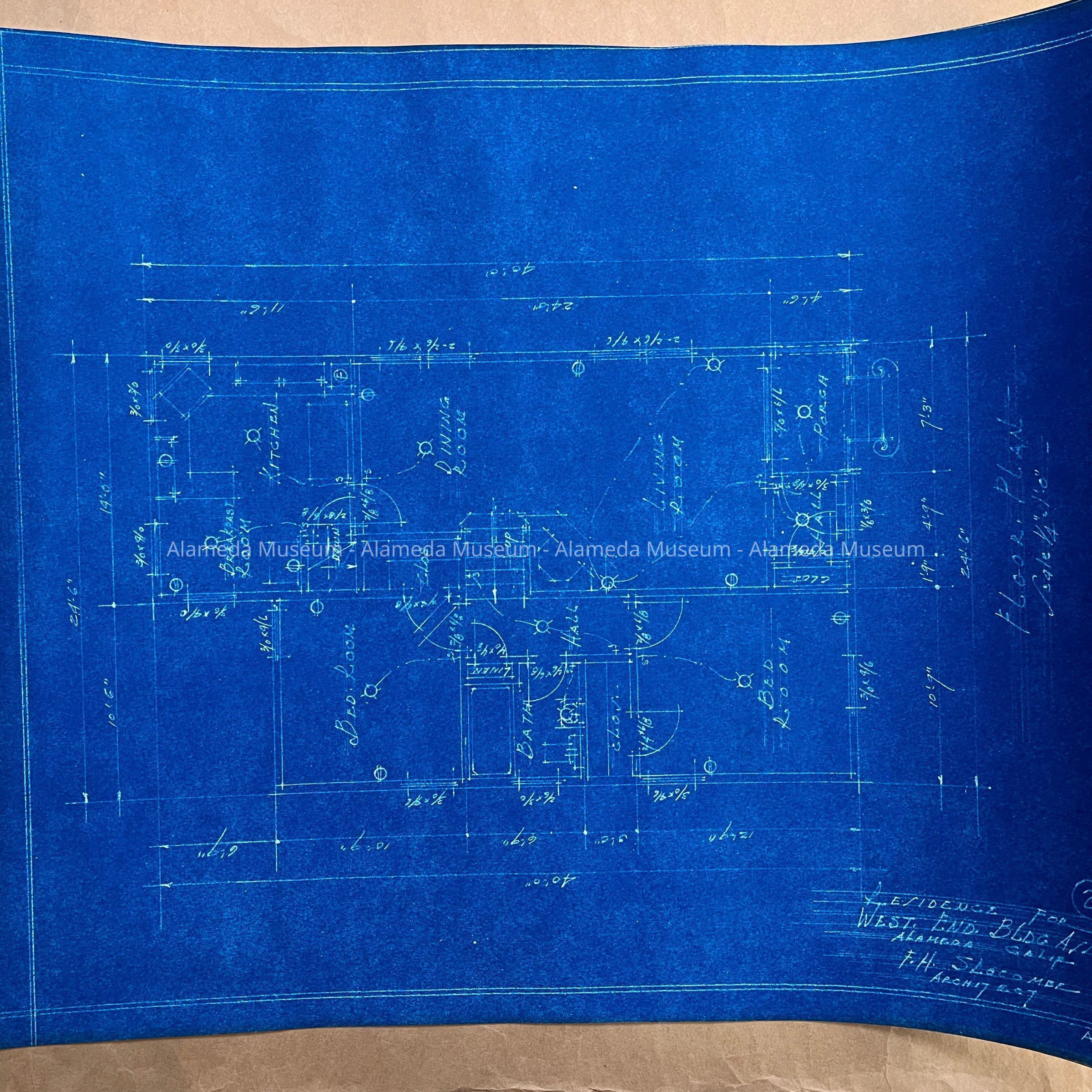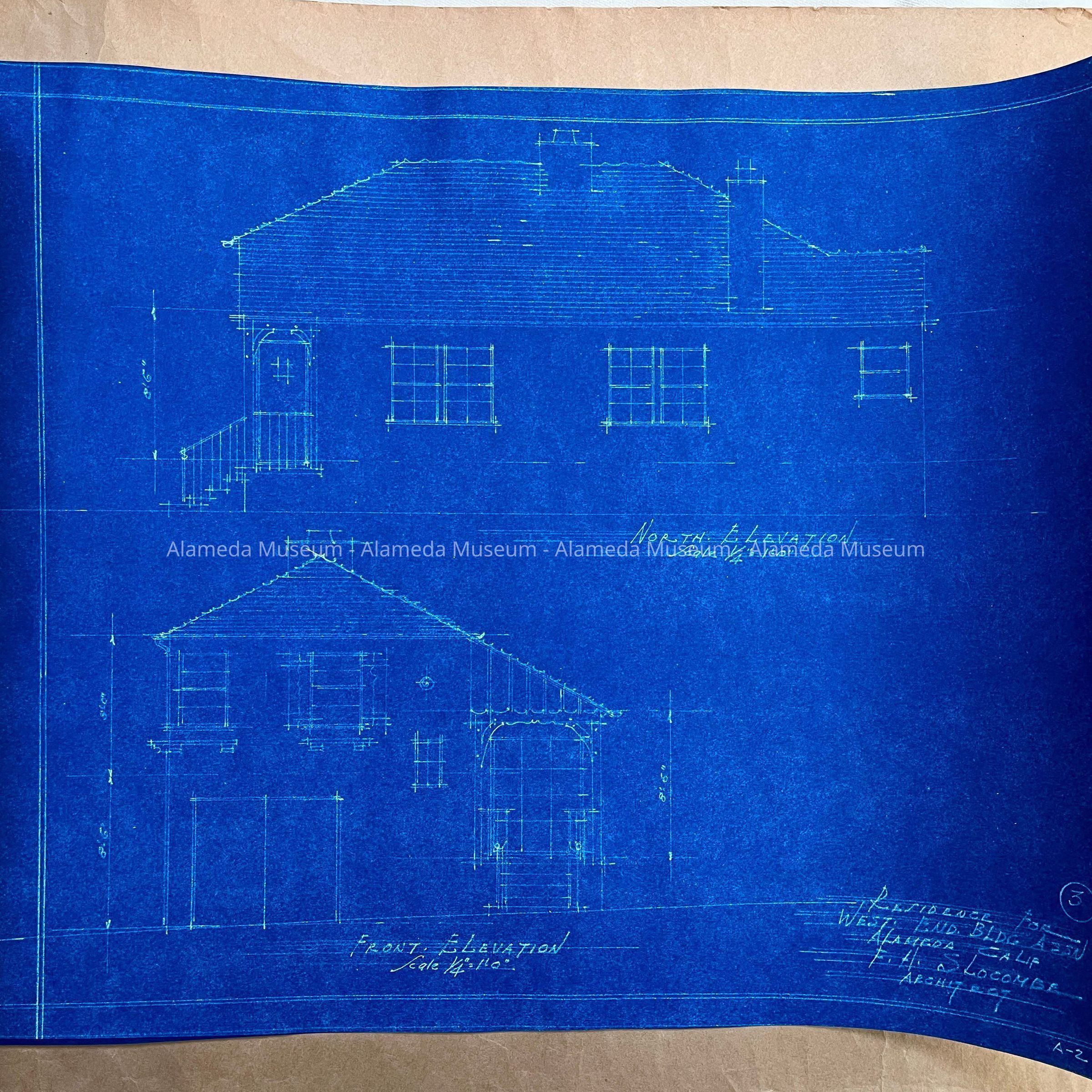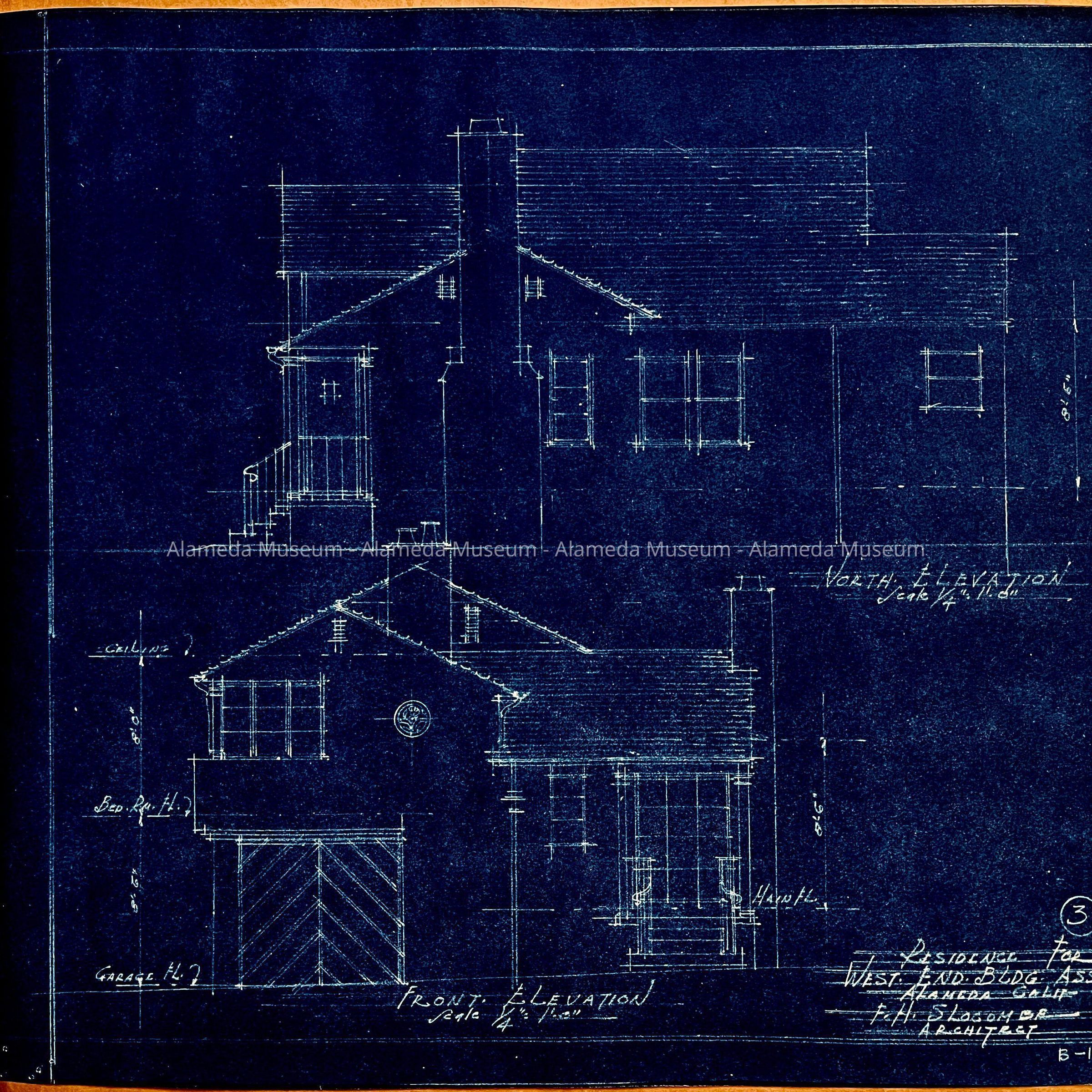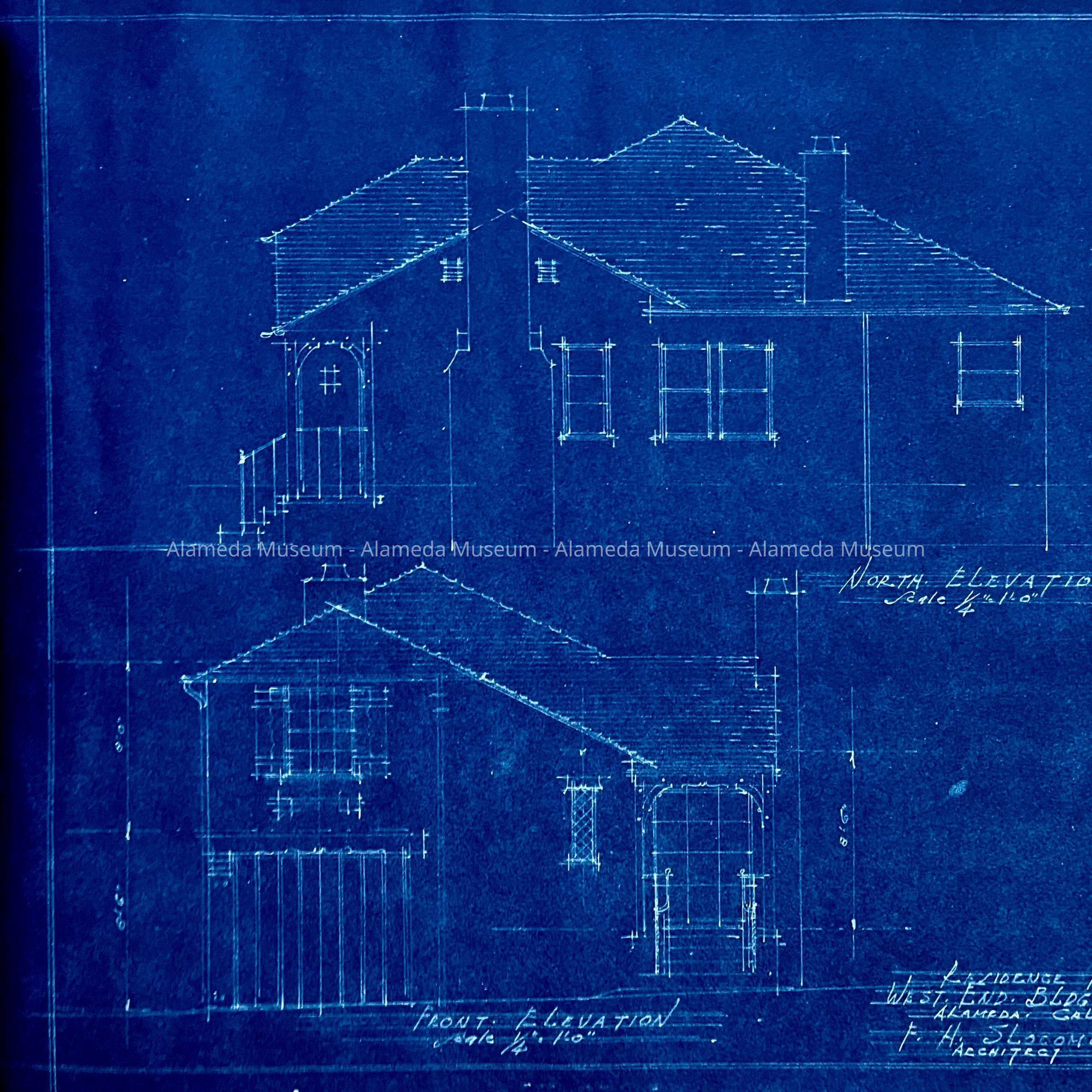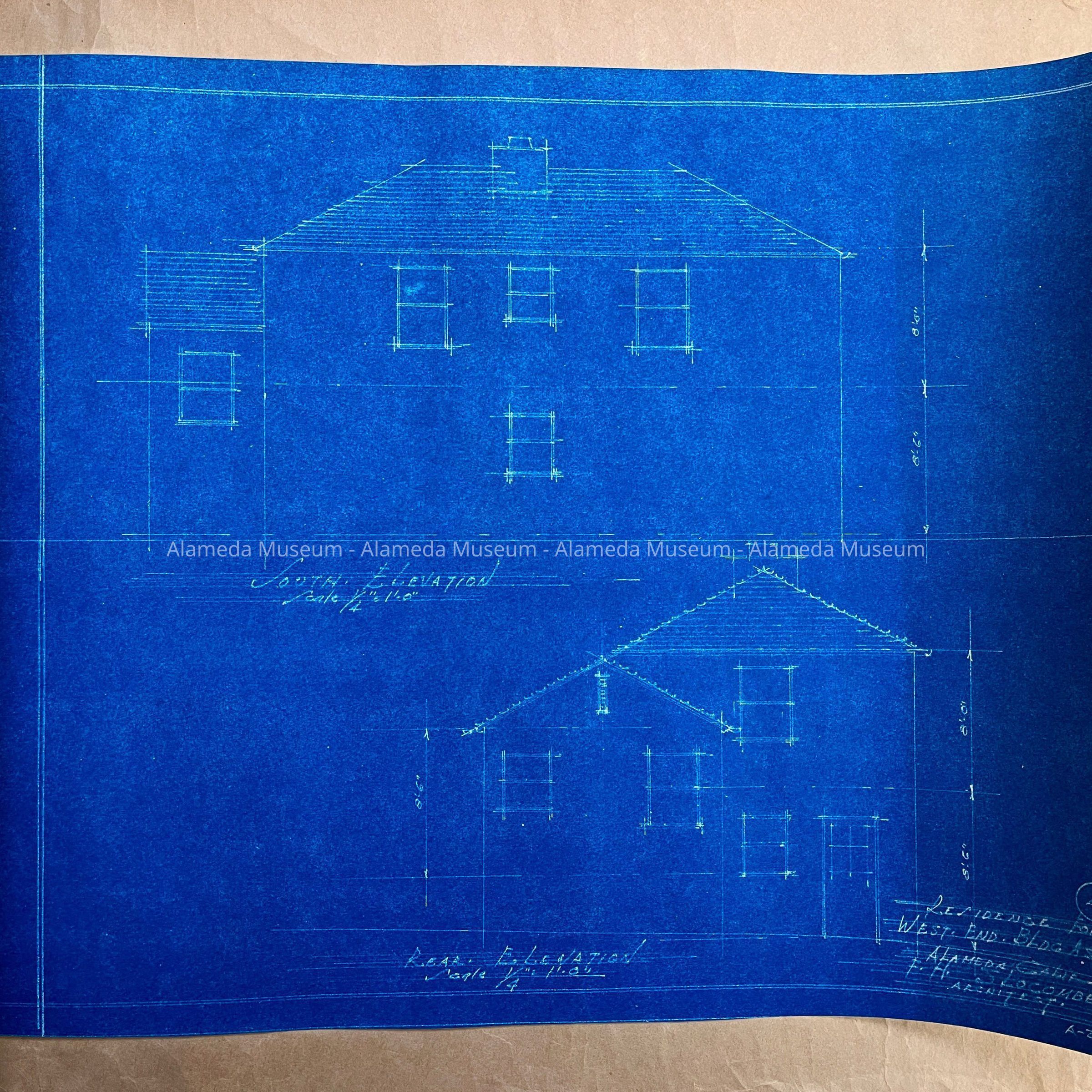 BLUEPRINTS FOR A RESIDENCE TO ACCOMMODATE THE WEST END BUILDING ASSOCIATION, FH SLOCOME, ARCHITECT. POSSIBLE LOCATION ON GRAND STREET IN ALAMEDA, CALIFORNIA.