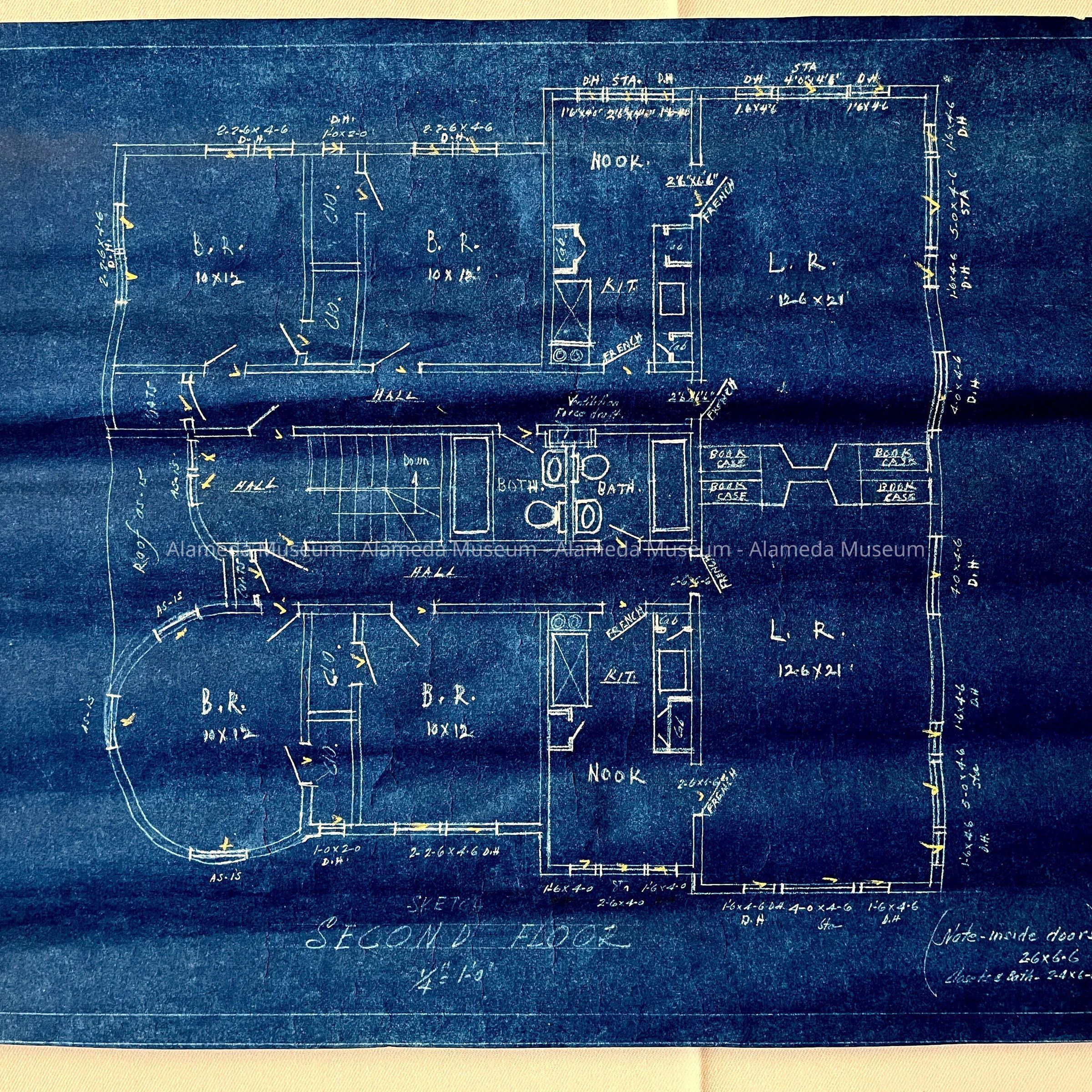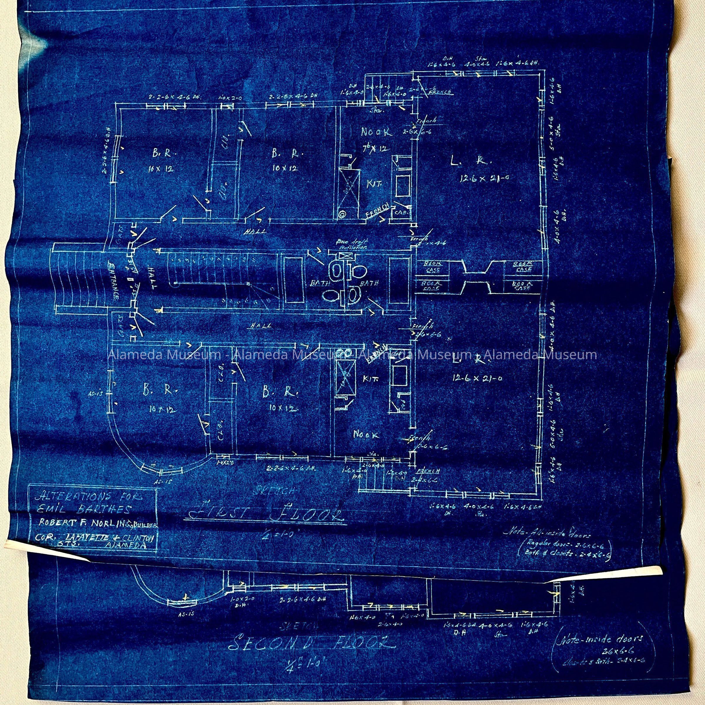 BLUEPRINTS DEPICTING ALTERATIONS FOR THE RESIDENCE OF ELMIL BARTHES, BY ROBERT F NORLING, BUILDER, CORNER OF LAFAYETTE AND CLINTON AVENUE, ALAMEDA, CALIFORNIA.