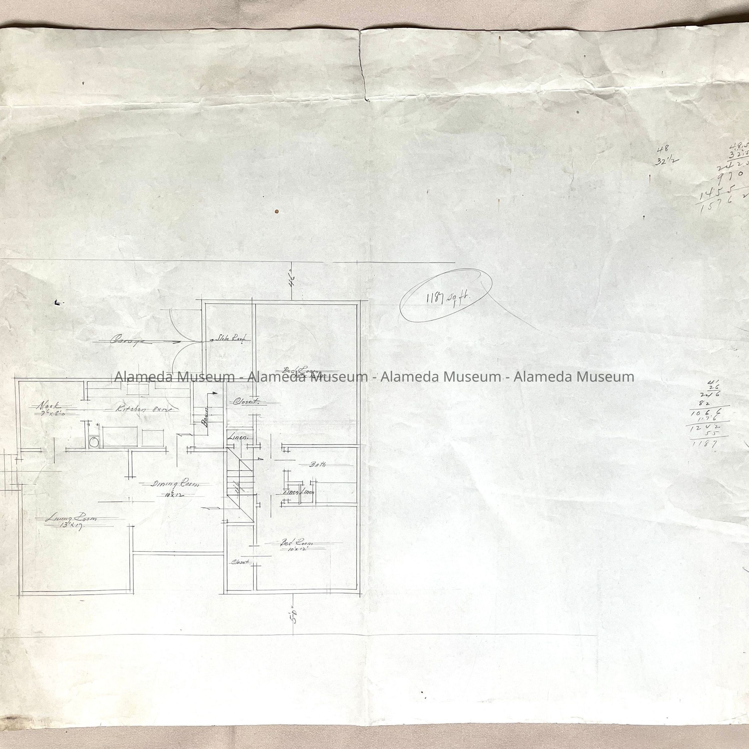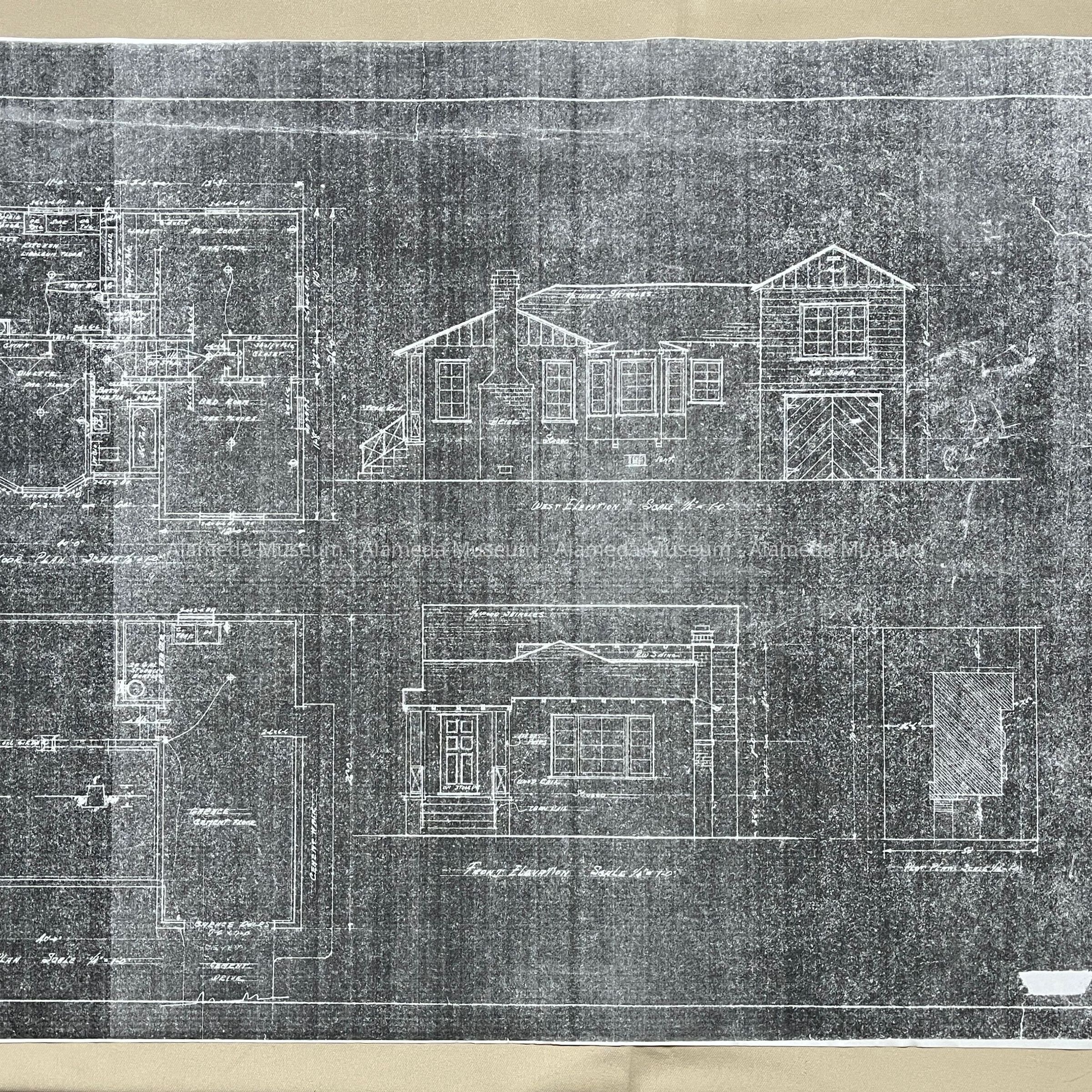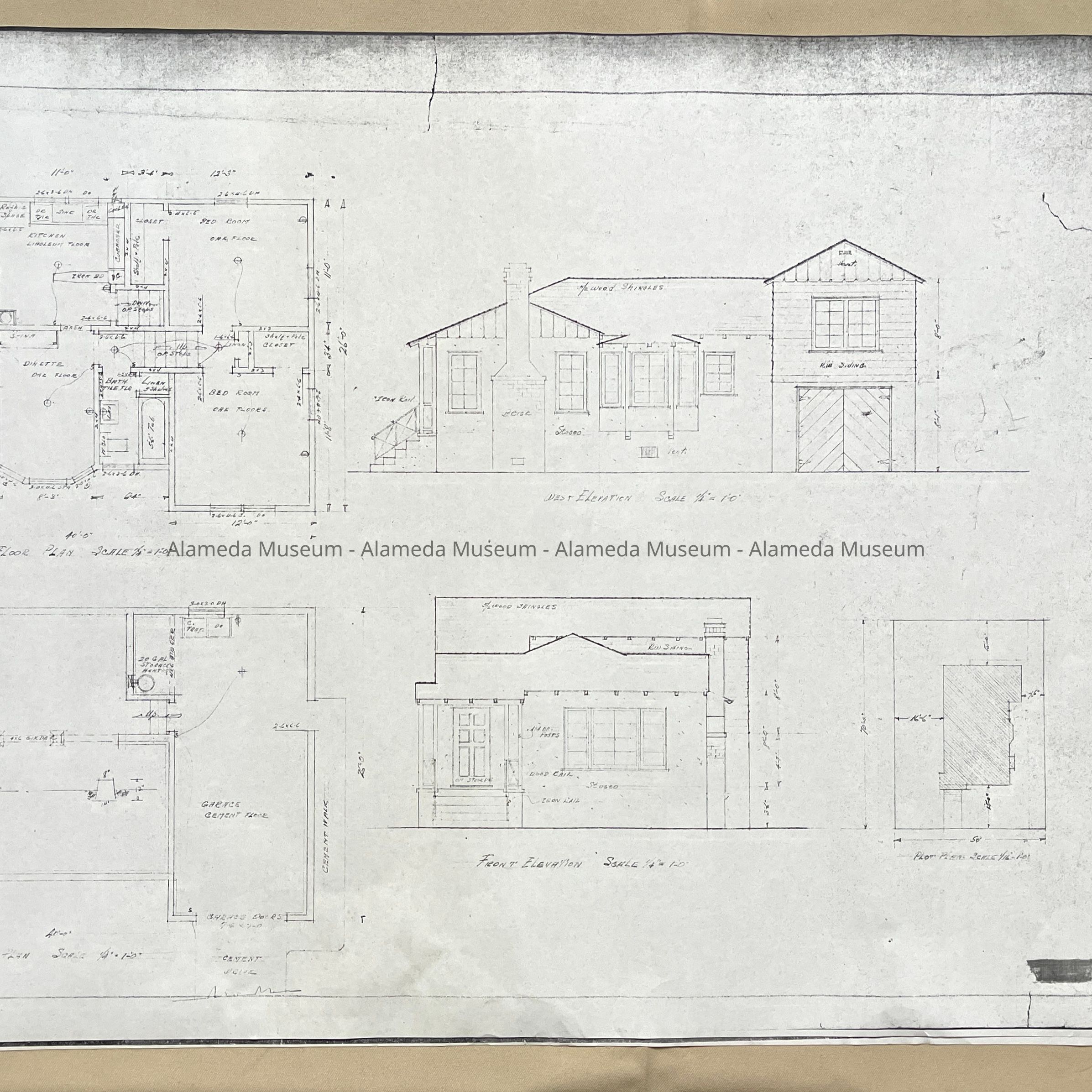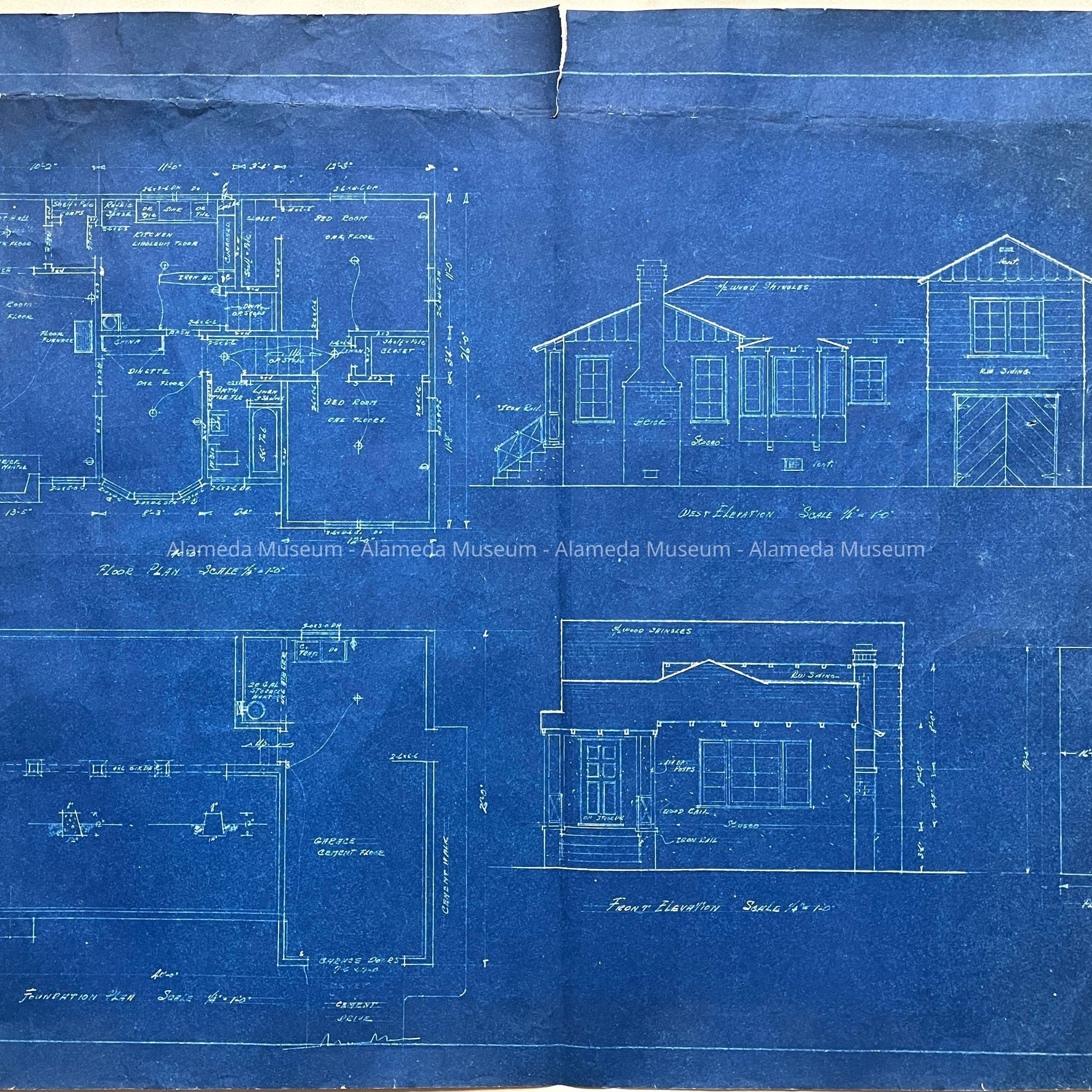 HISTORY OF OBJECTS: BLUEPRINTS ILLUSTRATING THE FOOTPRINT, MAIN FACADE, ETC. OF A ONE-WAY STREET-AND-A-HALF AT 400 HAIGHT AVENUE, ALAMEDA. INCLUDED ARE TWO REPRODUCTIONS OF THE SAME. A. ORIGINAL BLUEPRINT; B, C. COPIES OF THE ORIGINAL.