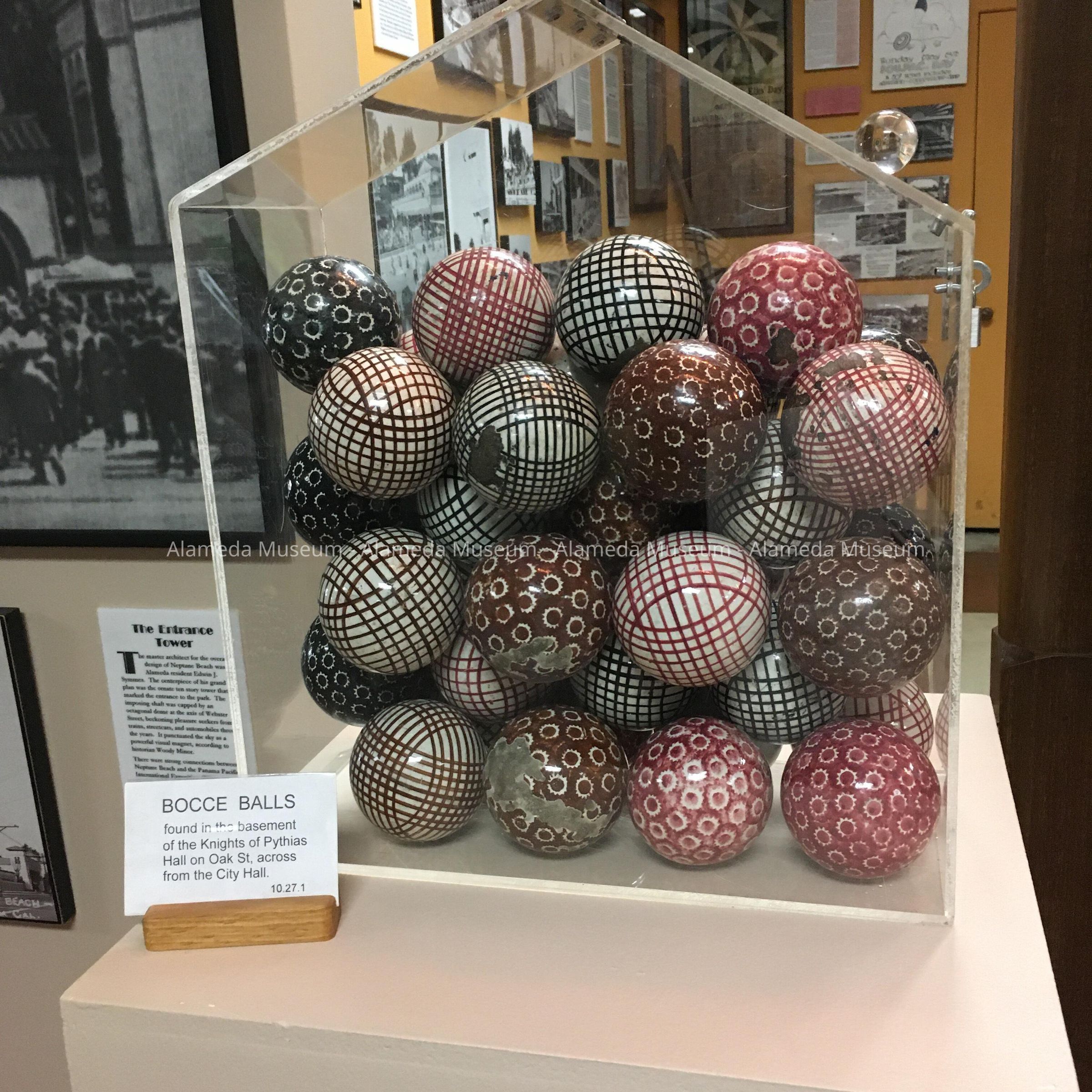 History of Object: Collection of bocce balls found in the basement of the Knights of Pythias Hall on Oak Street, across from the City Hall.