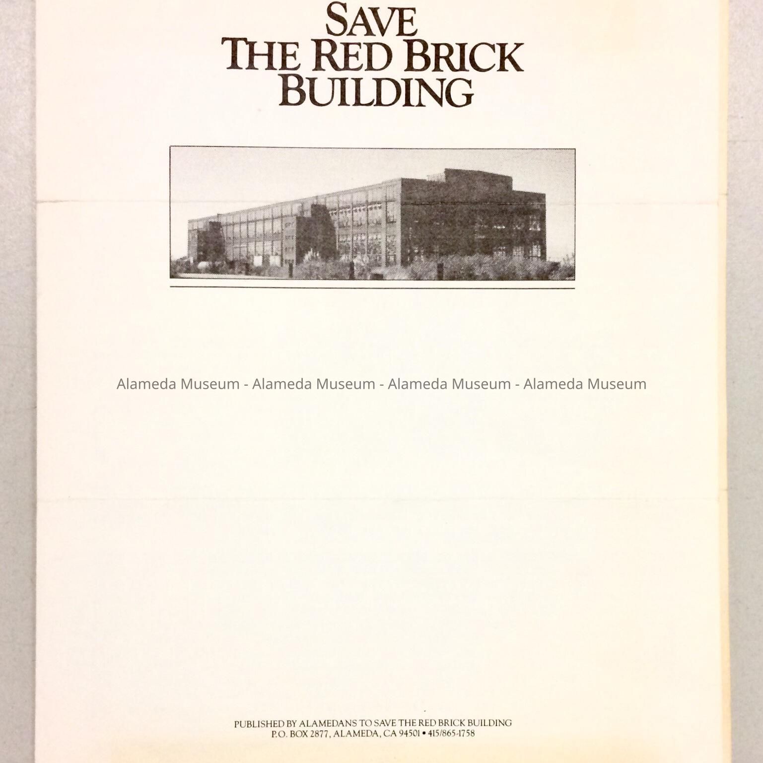 Description: A soft cover booklet with illustrations of the “Red Brick Building” in black type with a white colored background.