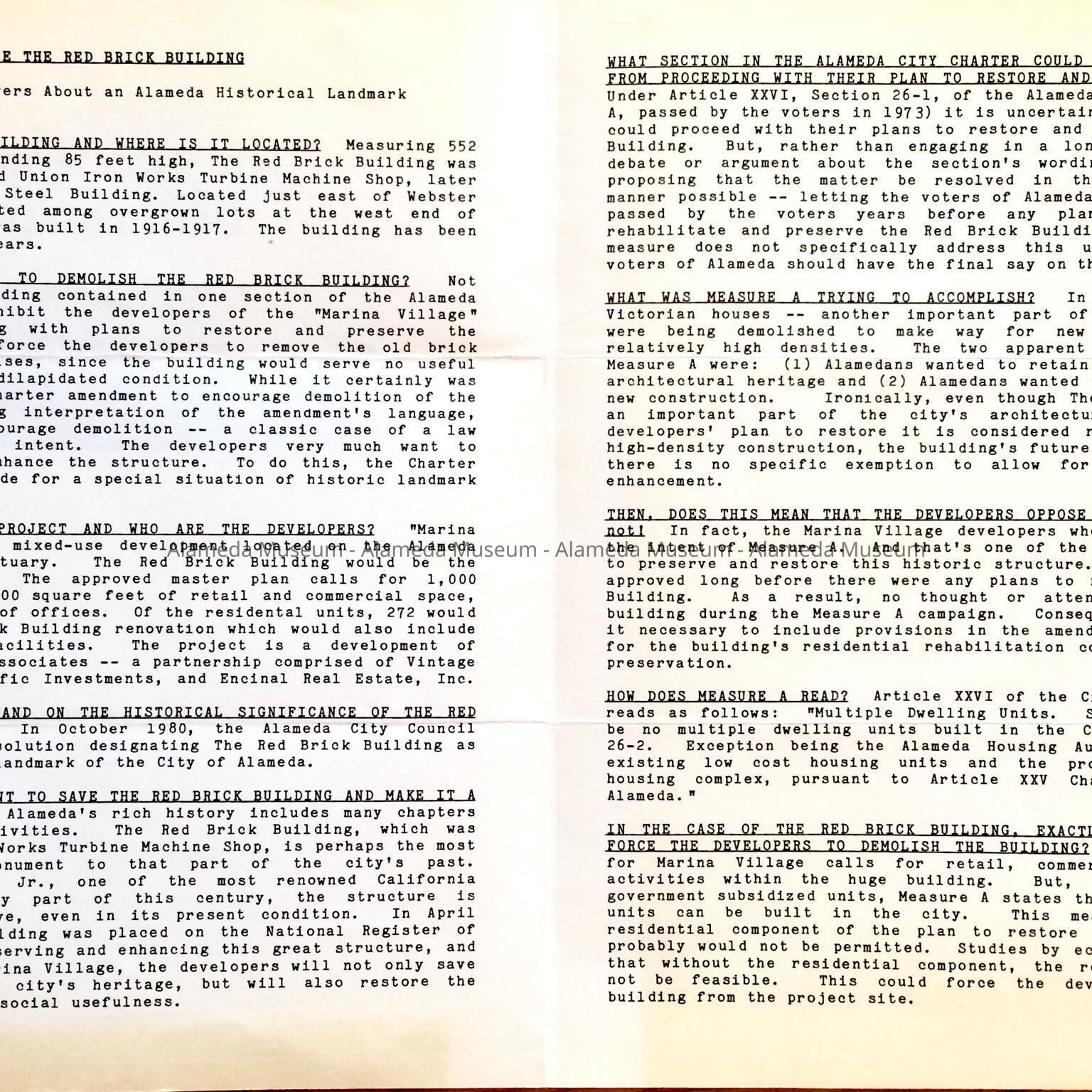 Booklet about the Bethlehem Steel Co. 'Red Brick' building, c. 1980sEntry/Object ID