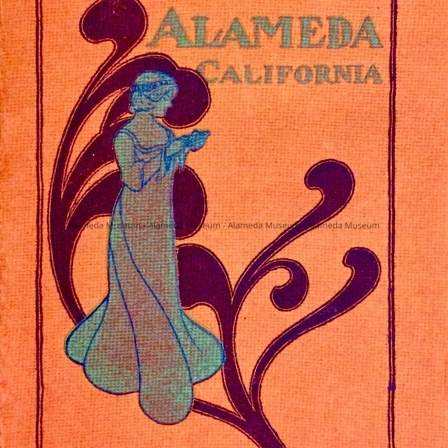 A SOFT-BOUND BOOKLET, WITH COVER DESIGN IN THE ART NOUVEAU STYLE OF A LADY, AND BOLD-PRINTED CAPTION, "ALAMEDA, CALIF," IN BLUE- AND PURPLE-COLORED LETTERS ON A RED-COLORED BACKGROUND.