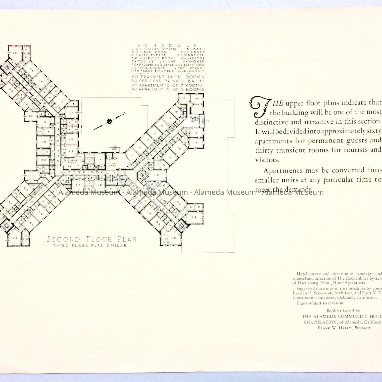 History of Object: A booklet with various illustrations of the proposed Hotel Alameda.
