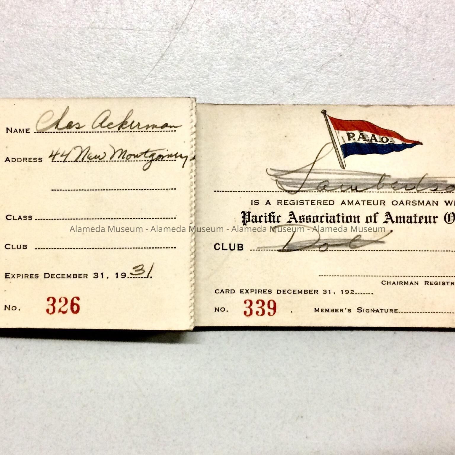 Booklet and receipt of membership cards of Pacific Association of Amateur Oarsmen, 1920sEntry/Object ID