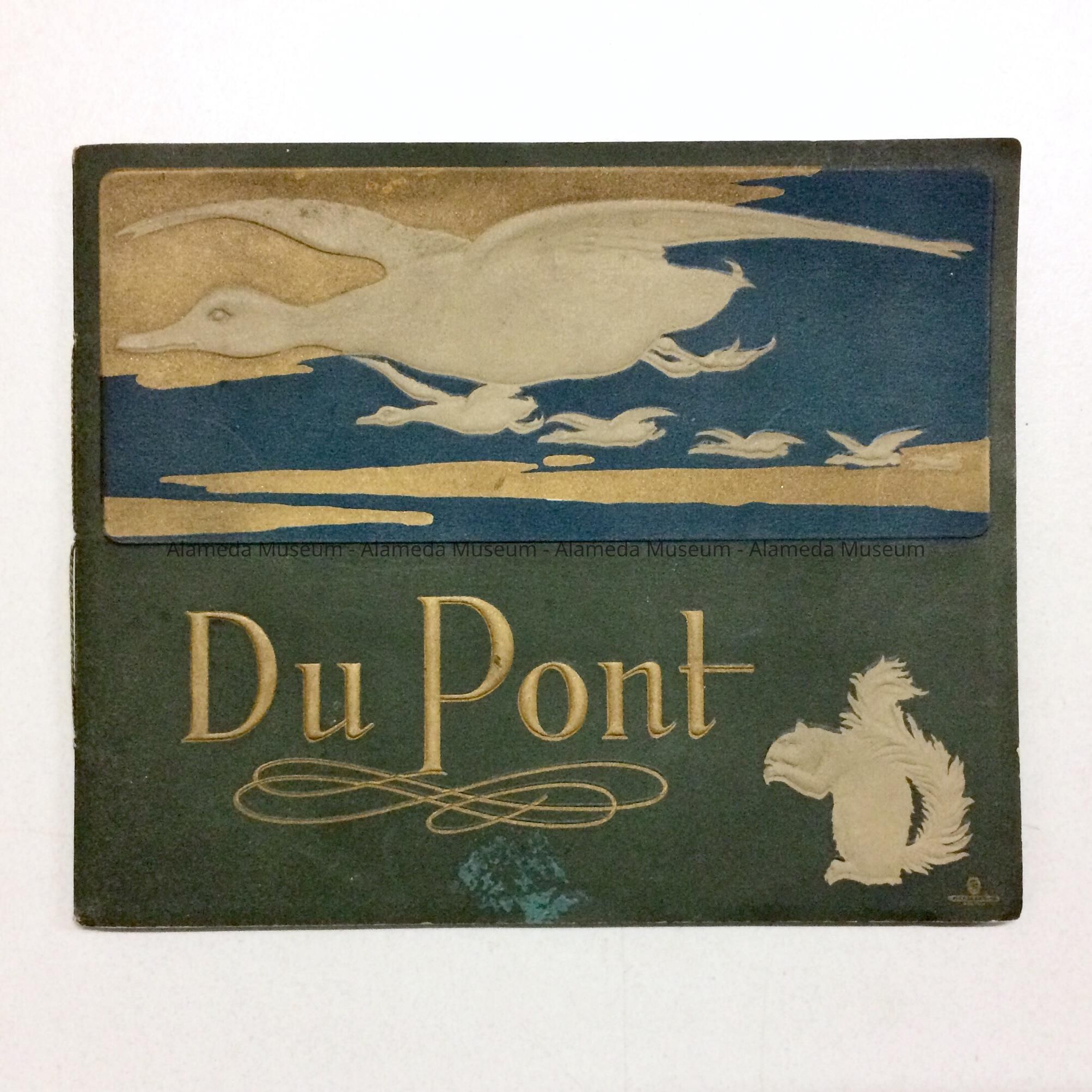 Booklet with illustrated cover (ducks in flight) with caption in gold type "DuPont" (embossed lettering).
