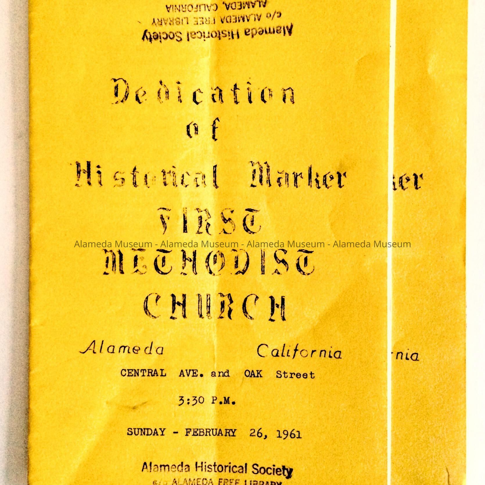 Booklet 'Dedication of Historical Marker, First Methodist Church', 1961Entry/Object ID