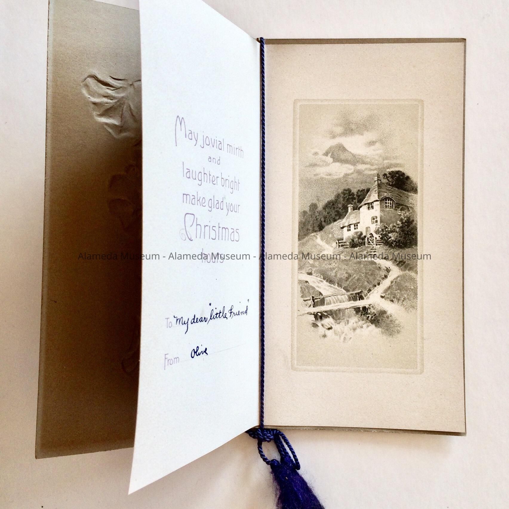 A CHRISTMAS CARD SENT TO MS ELVAH SINNETT OF 1524 BAY STREET, ALAMEDA, CALIFORNIA.