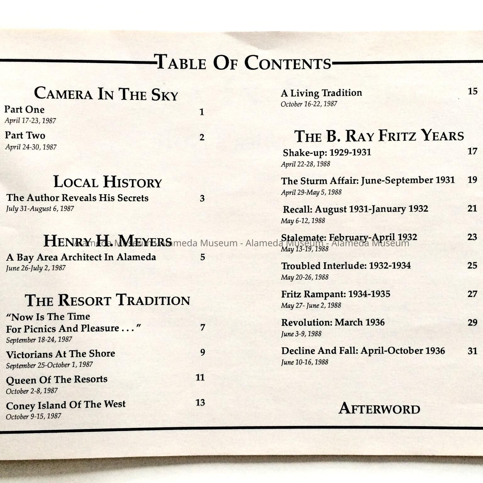 SUBJECT CATEGORY: HISTORY, ALAMEDA