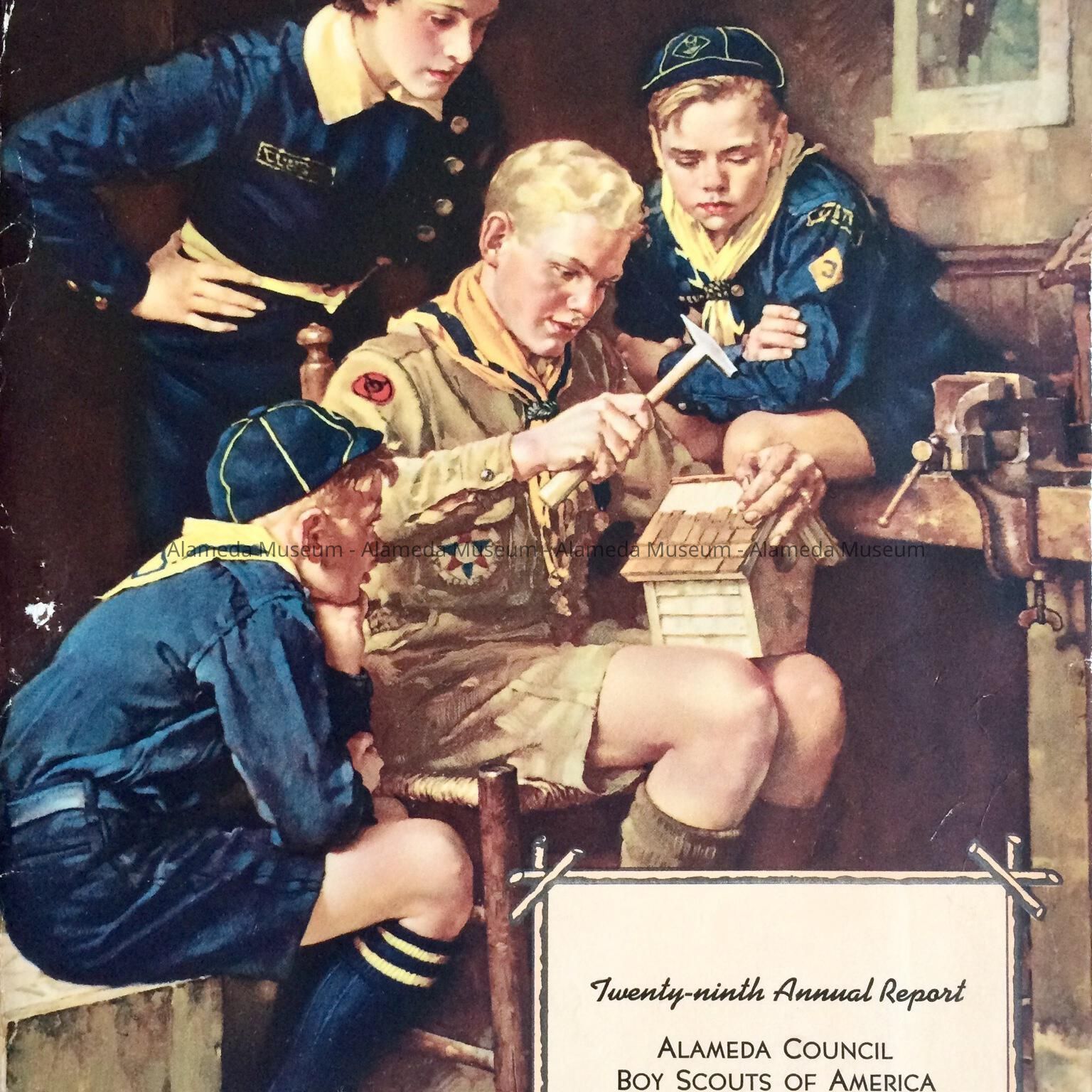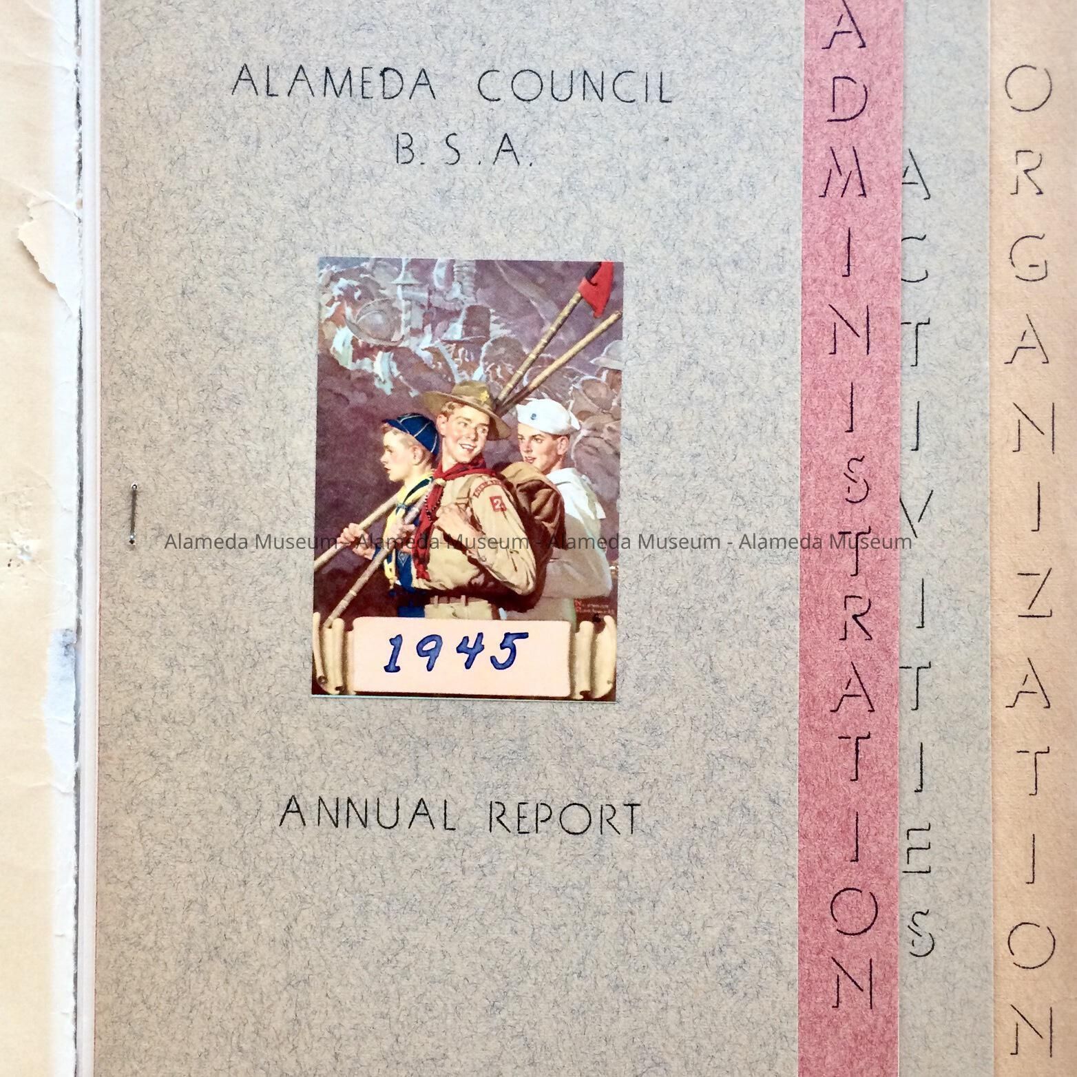 History: Booklet is the 29th Annual Report of the Alameda Council of the Boy Scouts of America dated December 31, 1945.