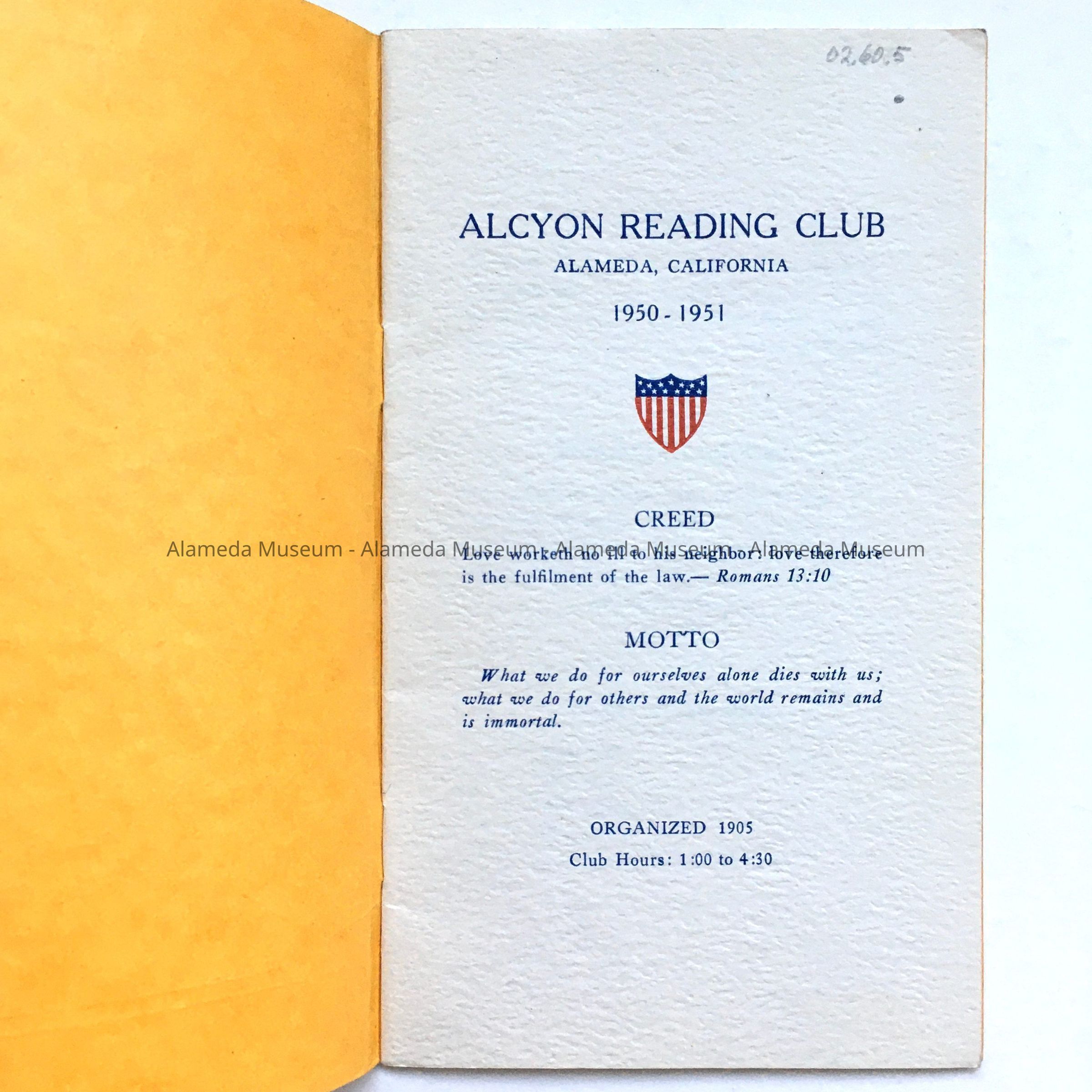 Booklet of the Alcyon Reading Club, 1950-1951Entry/Object ID
