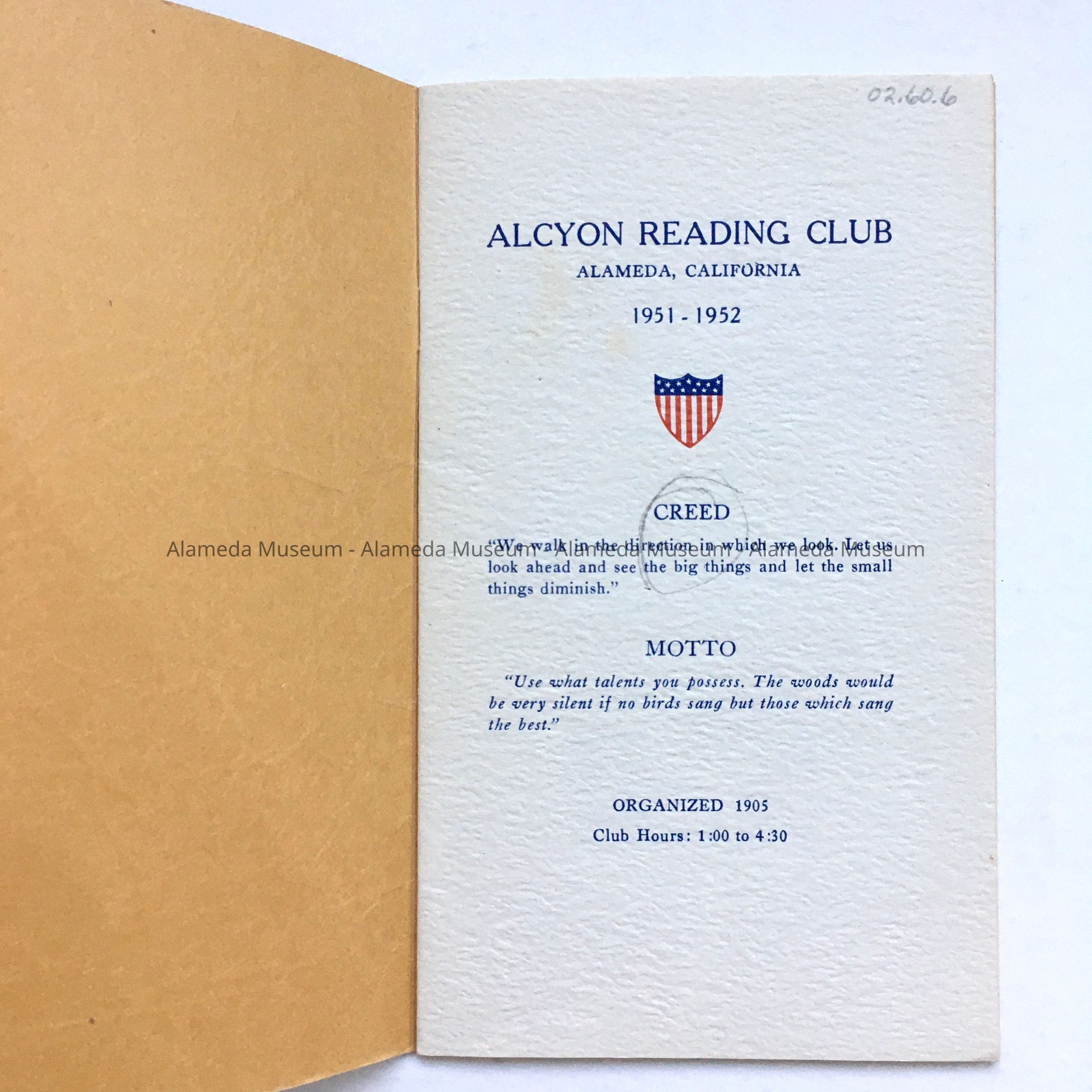 Booklet of the Alcyon Reading Club, 1951-1952Entry/Object ID