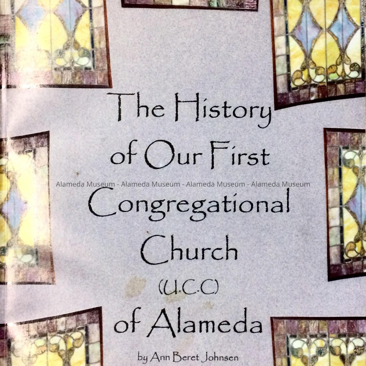 A SOFT-BOUND BOOKLET, WITH ILLUSTRATED COVER (IN COLOR) DEPICTING STAINED GLASS WINDOWS AND BOLD-PRINTED CAPTION, "THE HISTORY OF OUR FIRST CONGREGATIONAL CHURCH OF ALAMEDA."