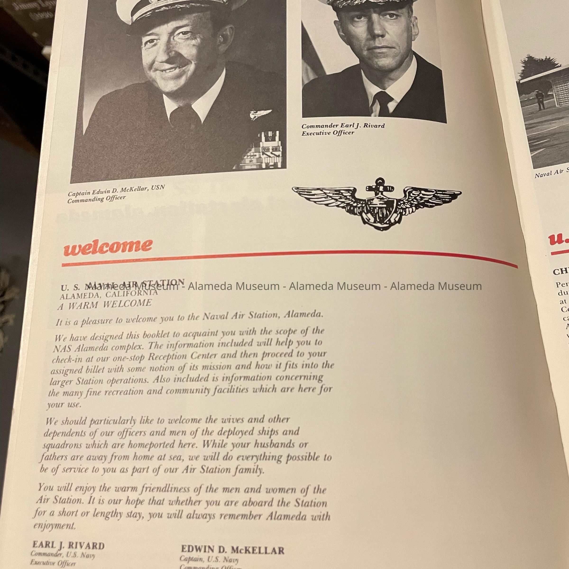 HISTORY OF OBJECT: A BOOKLET PROFUSELY ILLUSTRATED CONCERNING THE U.S. NAVAL AIR STATION, ALAMEDA. THE PUBLICATION ALSO INCLUDES A LISTING OF LOCAL BUSINESSES WHICH SPONSORED PRINTING OF THE PUBLICATION.