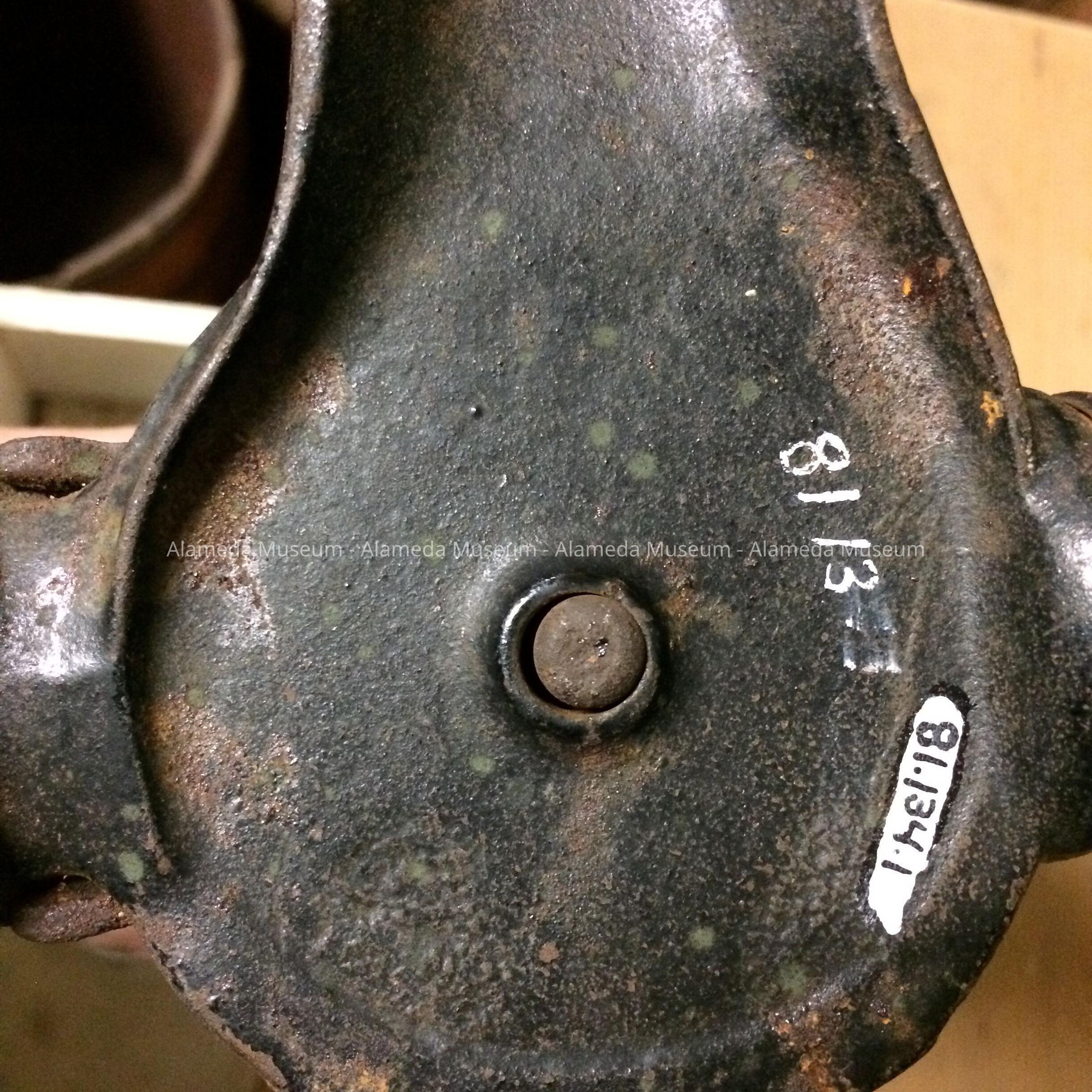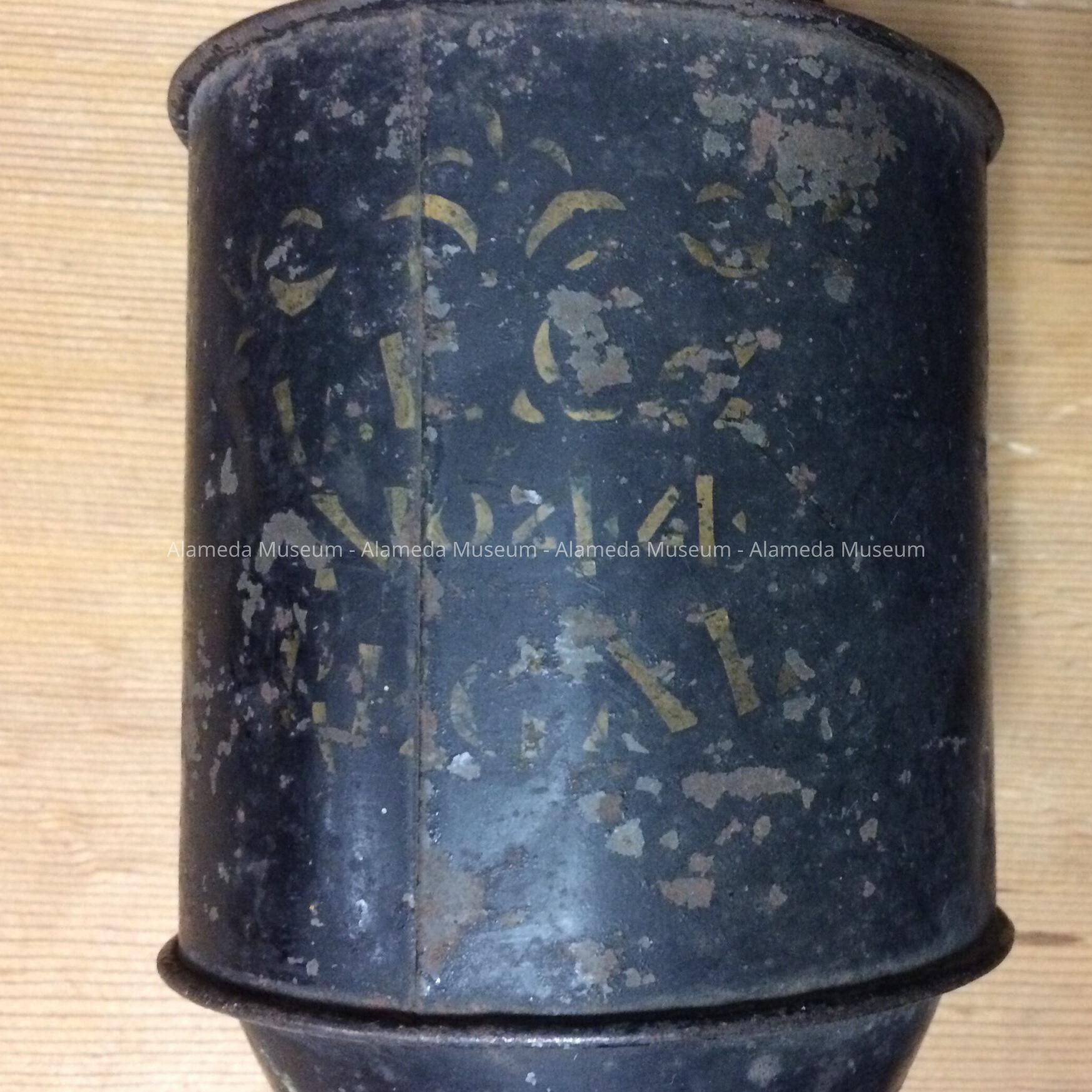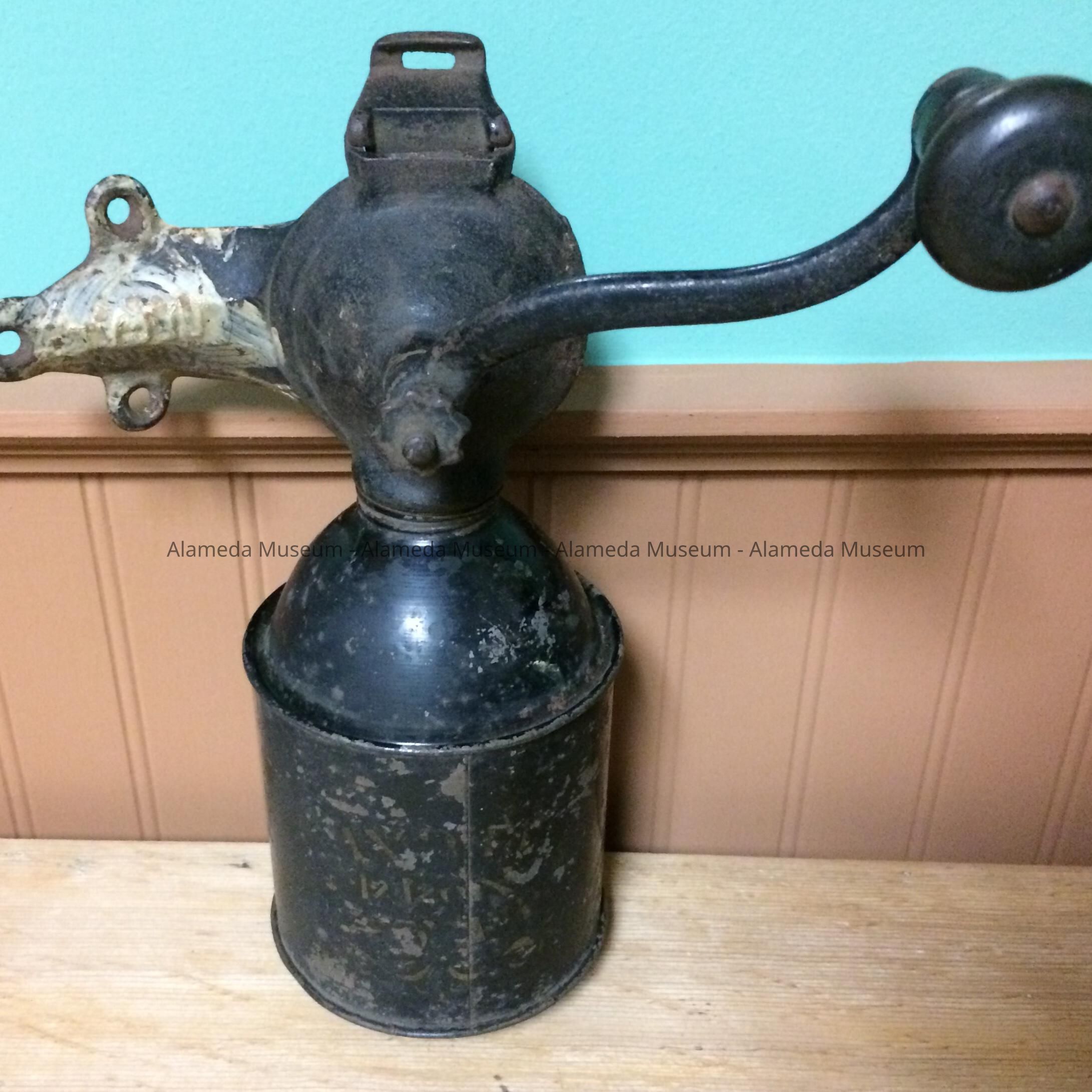 History of Object: old fashioned coffee grinder used in the home of Borgwardt about 1900. This is an old Alameda family known to have lived on Lincoln Avenue as early as 1896.
