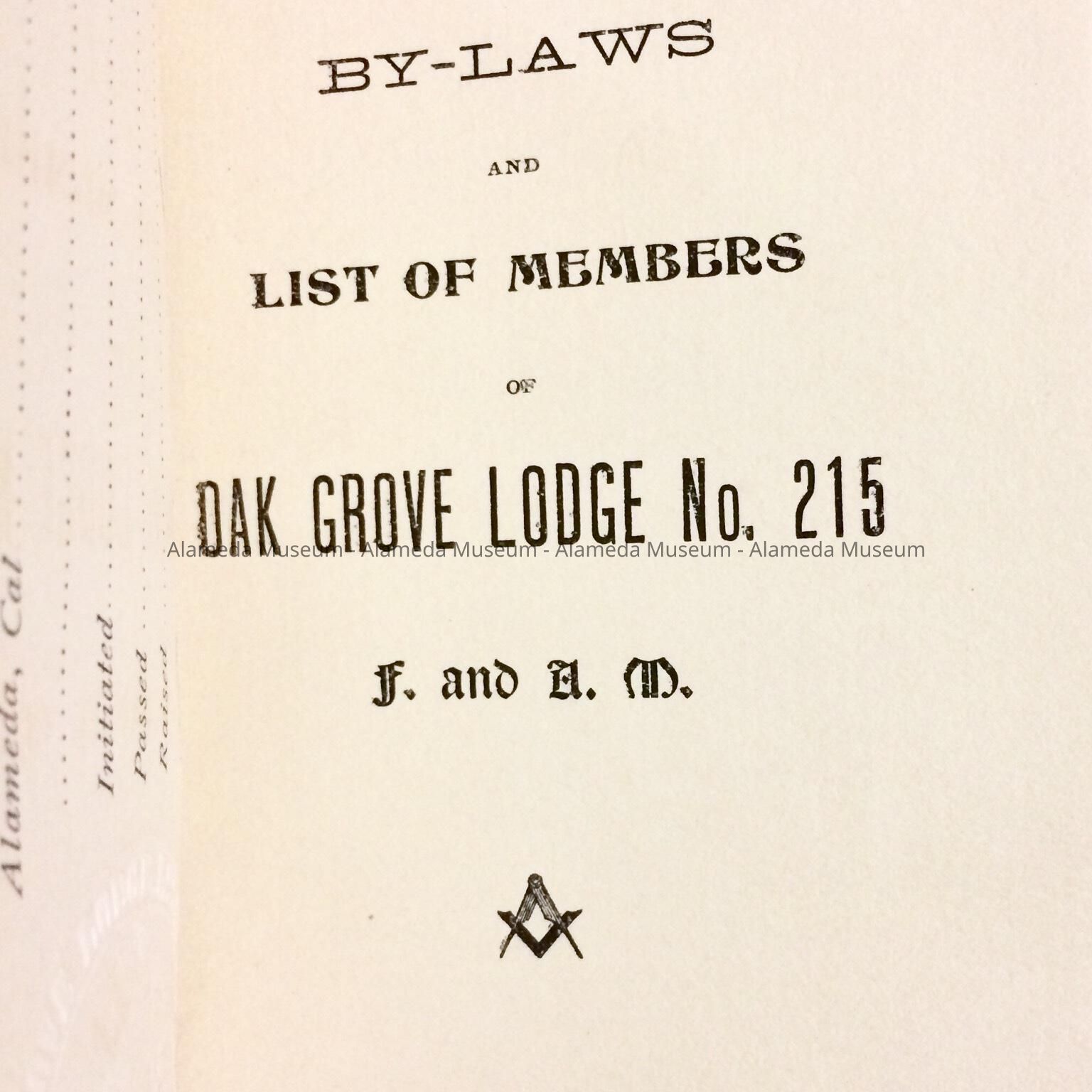 BOUND BY-LAWS OF THE OAK GROVE LODGE NO. 215 OF THE MASONS.